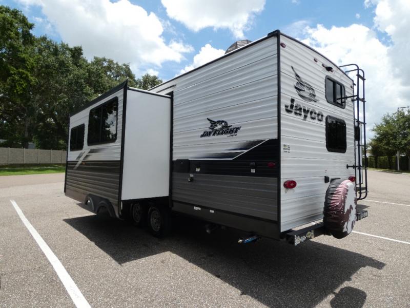 These Jayco Jay Flight travel trailers have been a family favorite for years with their lasting power and superior construction. An integrated A-frame and magnum truss roof system holds them together. When you tow one of these units you're towing the entire unit and not just the frame. With dark tinted windows, you have more privacy and safety. The vinyl flooring throughout will be easy to clean and maintain too. Come find your favorite model today!