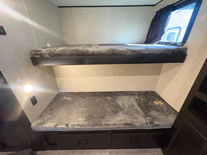 Spacious layout, smart design: The 331BTS features a dedicated rear bunkhouse area—perfect for kids or guests—with bunks above a dinette and full privacy away from the master bedroom.