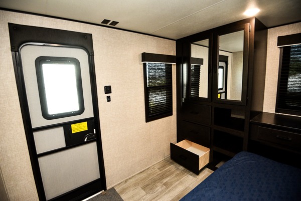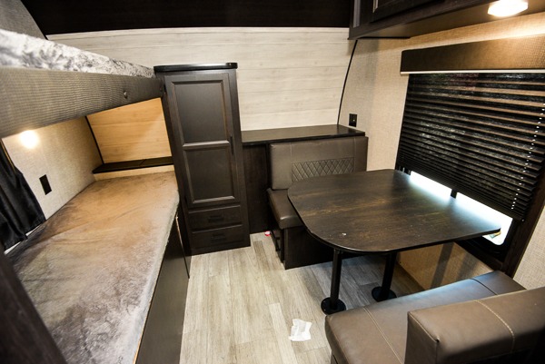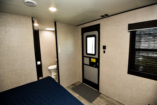 If you are ready to head out and see the country, this Jay Flight travel trailer is ready to join you! There is a rear private bedroom that has a queen bed slide for more changing space, a dresser and wardrobe for plenty of clothing storage, and the second exterior entry door for getting outside at a moment's notice. You'll also be directly connected to the walk-through bathroom, so you can get into the shower easily each morning. The second bathroom door leads out to the main living area where you will find a U-shaped dinette and jackknife sofa on a large slide. For even more sleeping space, there is a private bunkhouse at the front. This bunkhouse contains two bunk beds, a dinette, a hamper, and two wardrobes.