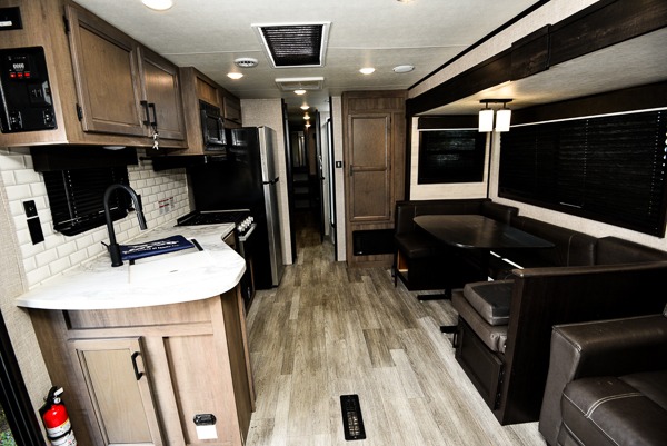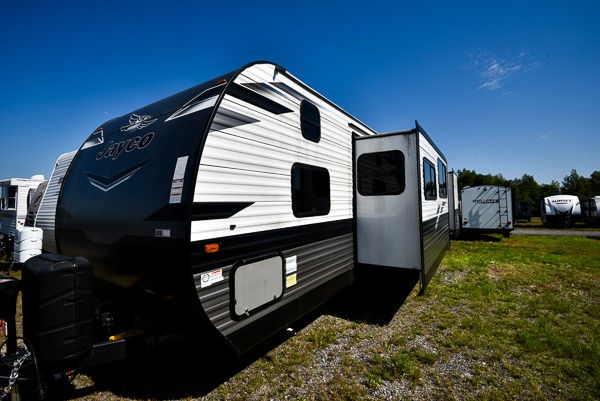 These Jayco Jay Flight travel trailers have been a family favorite for years with their lasting power and superior construction. An integrated A-frame and magnum truss roof system holds them together. When you tow one of these units you're towing the entire unit and not just the frame. With dark tinted windows, you have more privacy and safety. The vinyl flooring throughout will be easy to clean and maintain too. Come find your favorite model today!