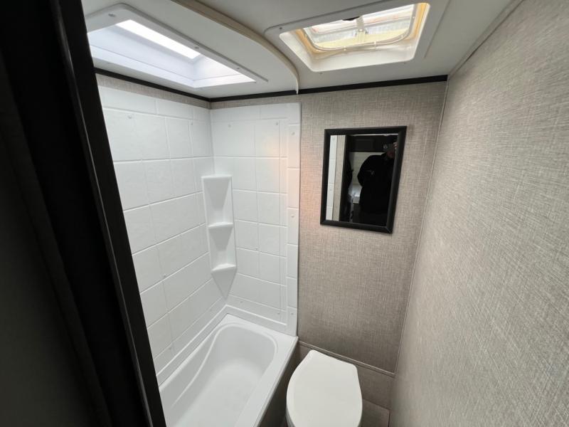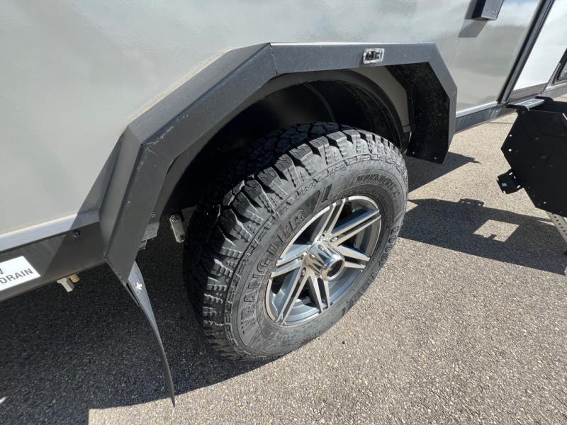 STX Edition: comes with a larger fresh water tank, Goodyear off-road tires, an enclosed underbelly, a double entry step, four stabilizer jacks, and a deluxe graphics package. Specific to the STX Edition, you will find a wide-stance axle, aluminum rims, a power tongue jack, and powder-coated wheel fenders.