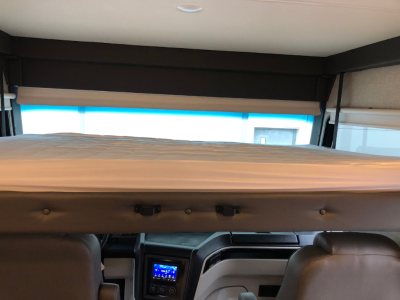 Grab your luggage, your beach towel, your hiking boots, and your favorite people and head out to a new scenic destination in this Precept Class A gas motorhome! The first thing you'll notice about this coach is how spacious it is. With a full-wall slide, a bedroom slide, and a living room slide, you'll be able to live freely. The other thing that will catch your eye is the full bathroom in the back and the half bathroom in the middle. You'll easily be able to rest on the hide-a-bed sofa, theater sofa, and booth dinette after a tiresome day, and if you want to just go straight to bed, you can lie down on the king-size bed. You can also provide your group with some extra sleeping space by adding the optional drop-down overhead bunk above the cab.