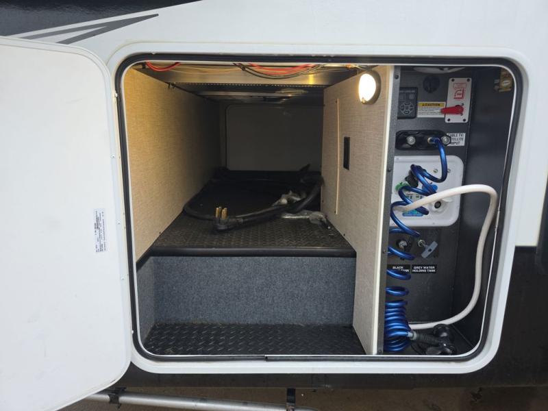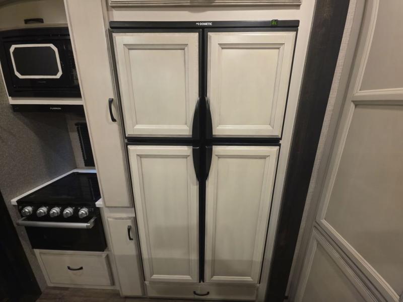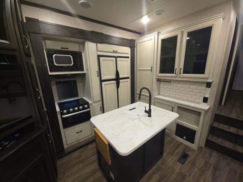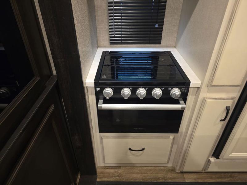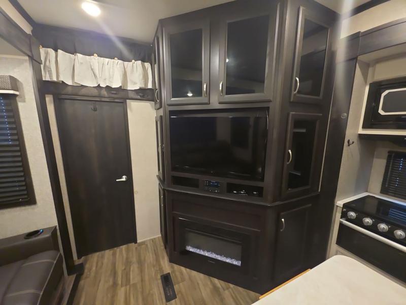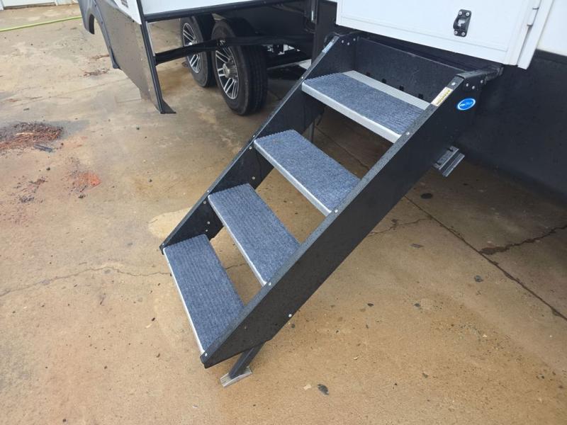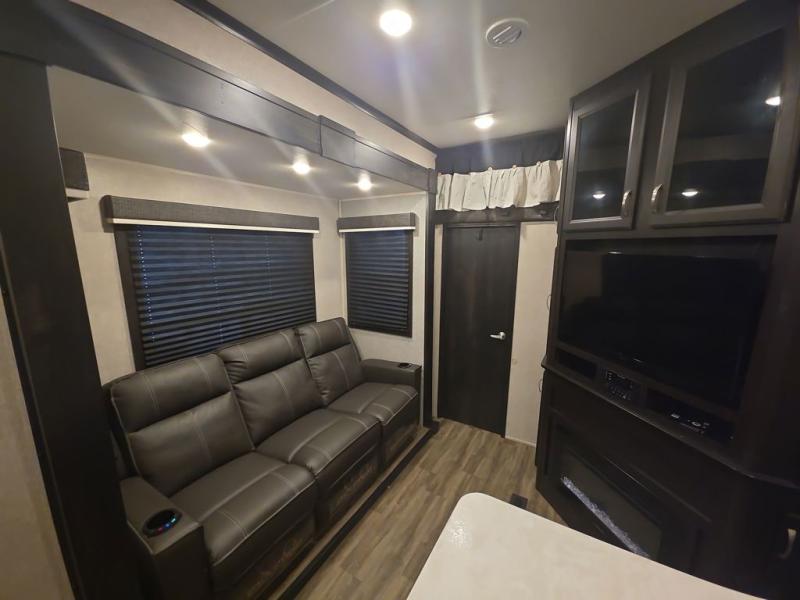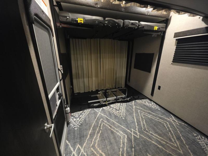 Do you want to kick up some mud during the day, and come back to luxury in the evening? This toy hauler allows you to do just that. You can easily get cleaned up in the full bath when you return, and there is a half bath in the 11' 6" separate garage for your guests. The front private bedroom includes a walk-in closet to keep your clothes wrinkle free, and there is even a space here to add an optional washer and dryer. Everyone will love to gather in the main living room on the sofa slide out in front of the LED HDTV and fireplace, and the chef of your group can prepare a meal on the recessed three burner cooktop or in the oven. After dinner, grab a cold drink, your camp chair, and head outdoors to sit under the 21' power awning with LED lights!