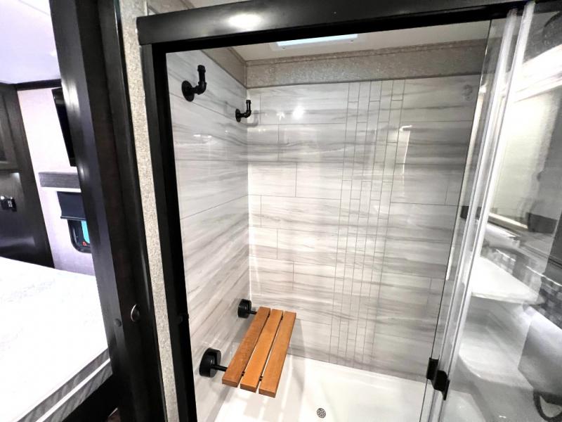With any Seismic Luxury Series fifth wheel toy hauler by Jayco, you will enjoy the versatile garage that offers a rear ramp door and patio with anti-slip, non-skid flooring, a Tuff-ply, rubberized garage floor liner, and the Industry's first 2" block-foam fully insulated garage floor. The mandatory 5 Star Handing package gives you MORryde CRE-3000 rubberized suspension, Dexter axles with Nev-R-Adjust brakes, E-Z Lube hubs and 4,000 lb. leaf springs, and a MORryde pin box and more. More standout features include the Tire Pressure Monitoring system, the wireless remote control system which includes Bluetooth wireless interior controls, the fresh water drinking system, and the list goes on and on! Choose a Seismic Luxury Series because there isn't anything better!