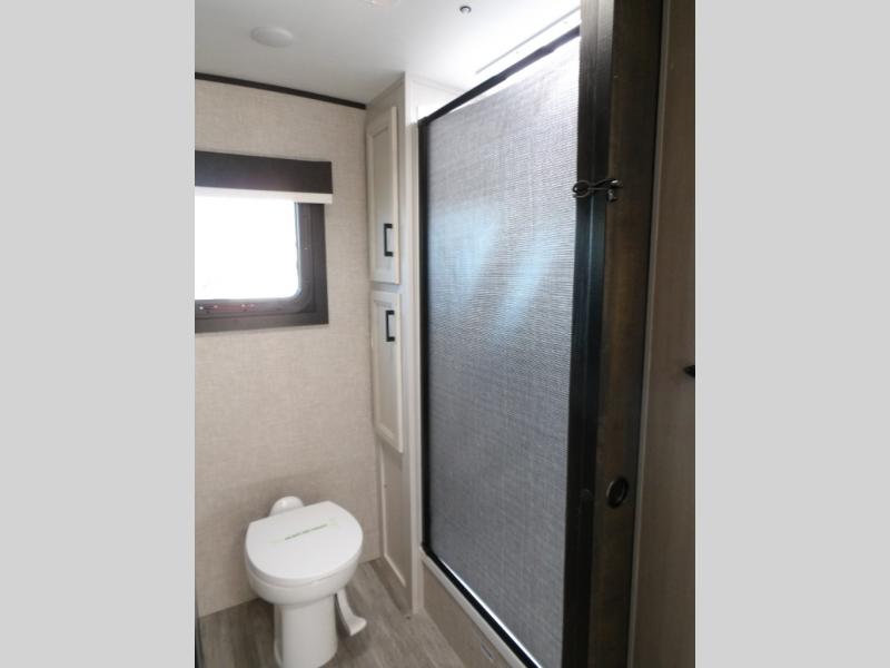 This versatile travel trailer is perfect for your family of four. The Murphy bed will provide comfortable sleeping space at night, and the jack-knife sofa will give you a place to relax during the day. Your crew can gather around the U-shaped dinette across from the fireplace, plus there is an LED TV here for movie night. This model also includes an outside kitchen under the 19' awning for an inviting outdoor living space, and two pass-through storage compartments for all your gear. And don't forget about the spacious full rear bath with plenty of counterspace, a medicine cabinet and a linen closet for clean towels!