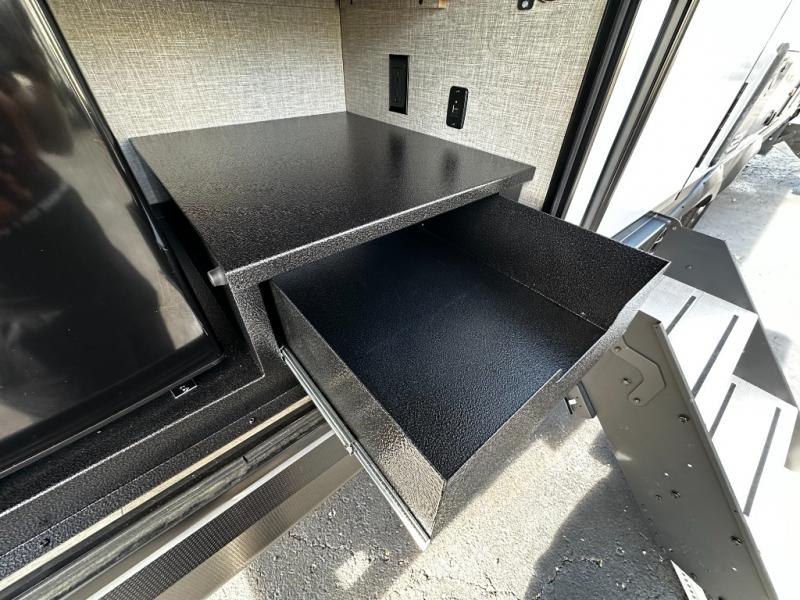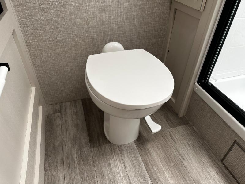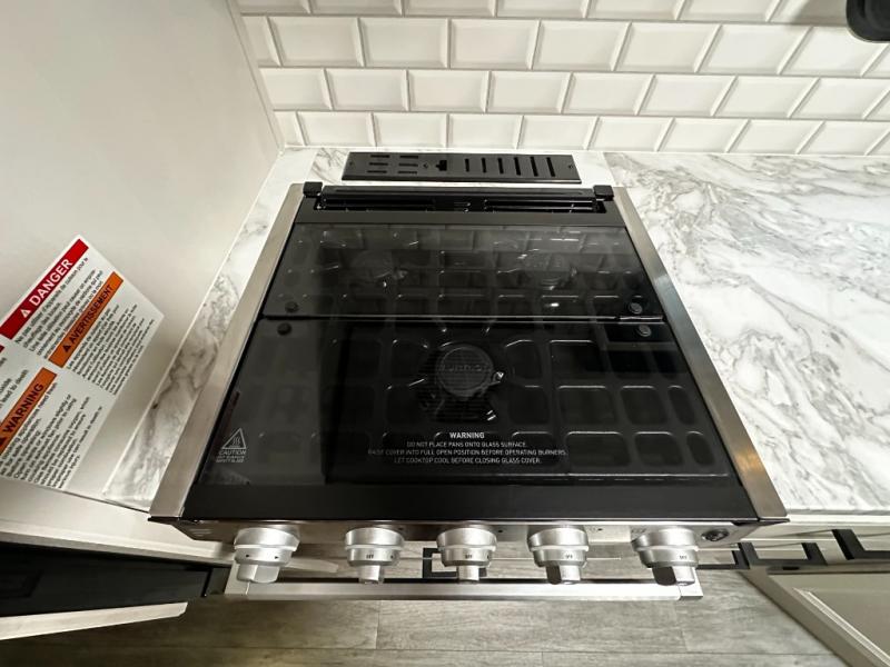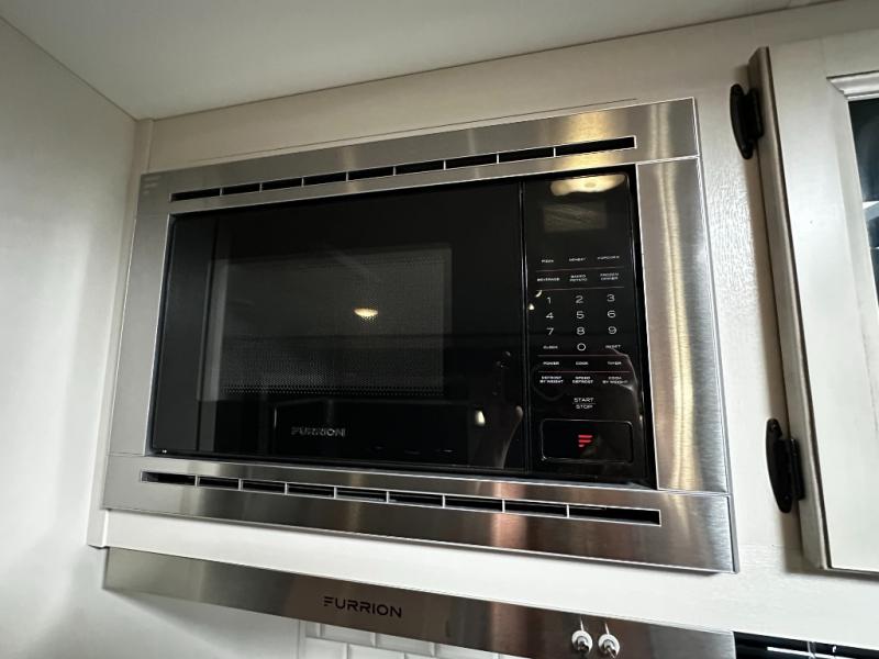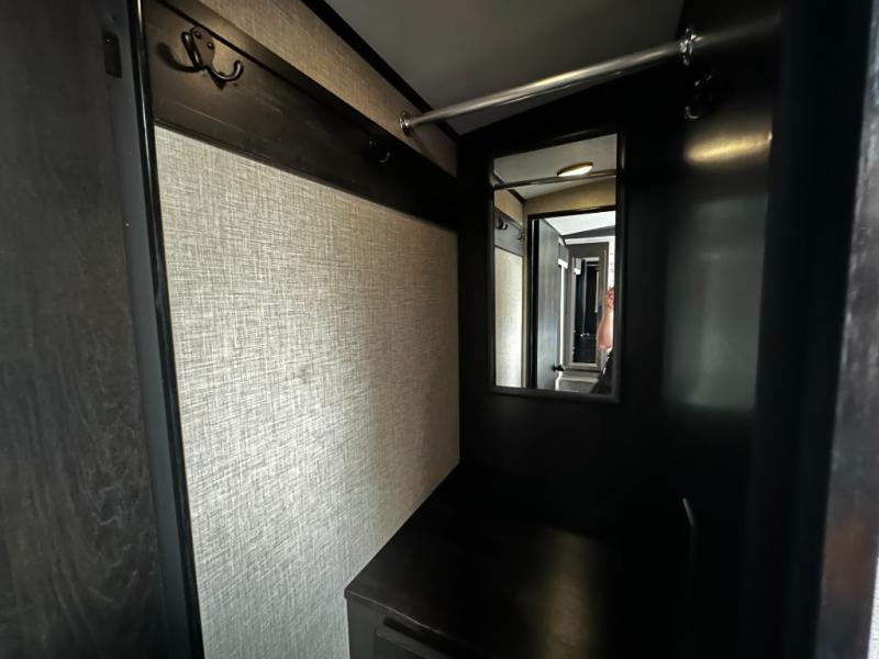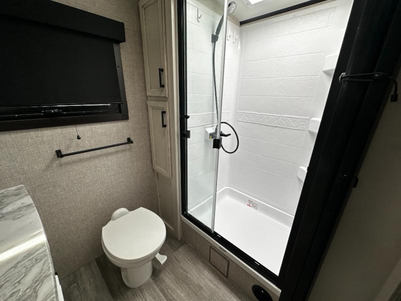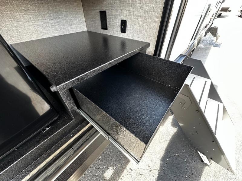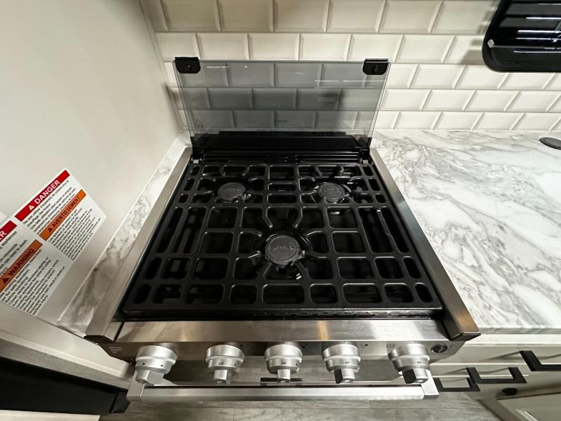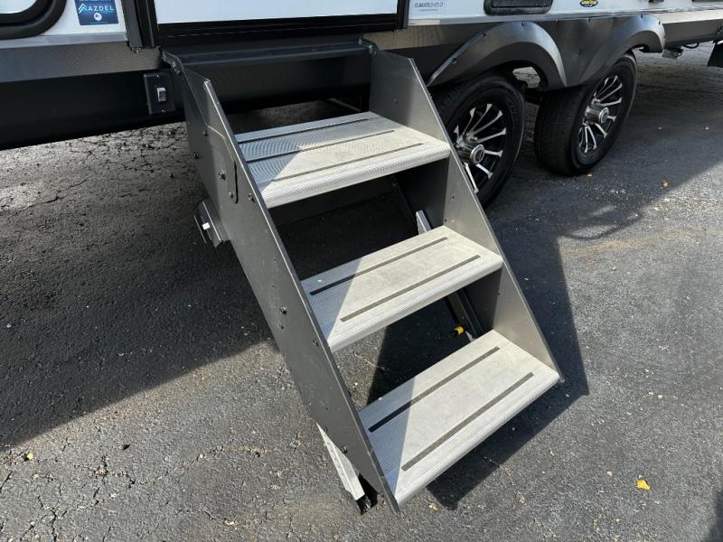 Your family will love camping every other weekend in this spacious travel trailer. The full rear bath is tucked away in the back for privacy, and there are dual entry doors for convenience. When you're not outside cooking on the outdoor kitchen, gather around the U-shaped dinette for game night. You'll find the LED TV and fireplace will make this area feel more like home, and there are two pantries to store snacks and dry goods. When it comes time to call it a night, head to the front private bedroom for a great night's rest on the queen bed, and you'll find two wardrobes plus a closet to keep your clothes tidy.