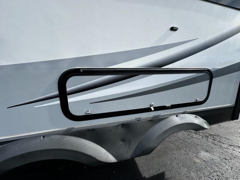 The lightweight White Hawk travel trailers by Jayco will blow you away with their roomy interiors, luxurious amenities, and durable construction. The Magnum Truss Roof System can withstand 50% more weight than the competition, and the Stronghold VBL lamination is the lightest, yet strongest in the industry. Each model includes the JAYCOMMAND "Smart RV" system with a tire pressure monitor system, plus American-made Goodyear tires for maximum durability and carrying capacity. You will love the sleek look of the front molded fiberglass cap with an automotive windshield and blue LED accent lighting, along with the frameless windows and automotive-style aluminum rims. The White Hawk travel trailers also include an arched interior ceiling, a kitchen skylight with a shade, residential vinyl flooring with cold crack resistance, and an electric fireplace.