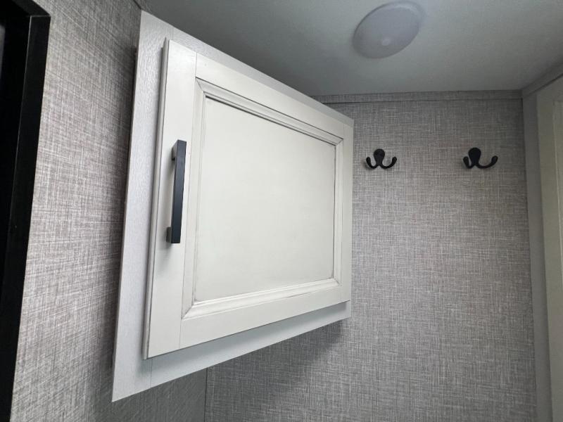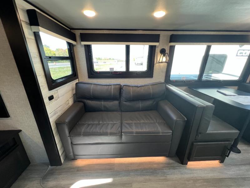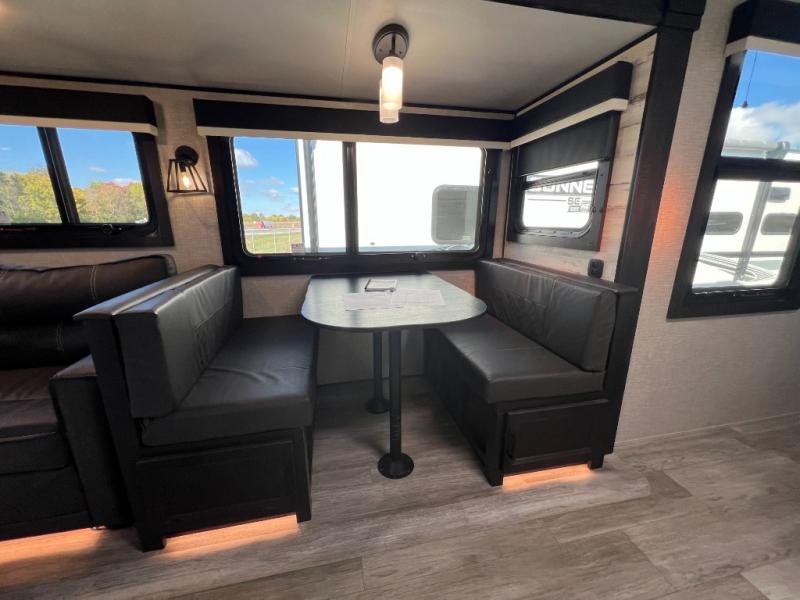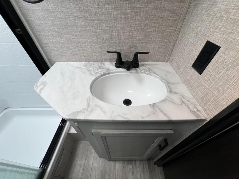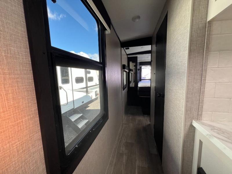 How does a dual entry travel trailer sound with sleeping space for five? Pack up and head to the lake because this model is the one! Once you arrive at your destination, set up the 20' power awning and a enjoy a cold drink in your camp chair. There is a convenient Jayport with an LP quick connect if you want to hook up your gas grill you brought along, and plenty of outside storage to bring along the fishing poles. Inside, your crew can relax on the tri-fold sofa, the booth dinette, or the rear theater seat, which is in great view of the LED TV and fireplace. Preparing meals will be easy in this White Hawk kitchen with plenty of counter space, a three burner cooktop, plus a microwave oven. The full bath includes a linen closet to store clean towels and a medicine cabinet to bring along your necessities. And don't overlook the front private bedroom with a queen bed, dual wardrobes, and its own exterior entry door for convenience!