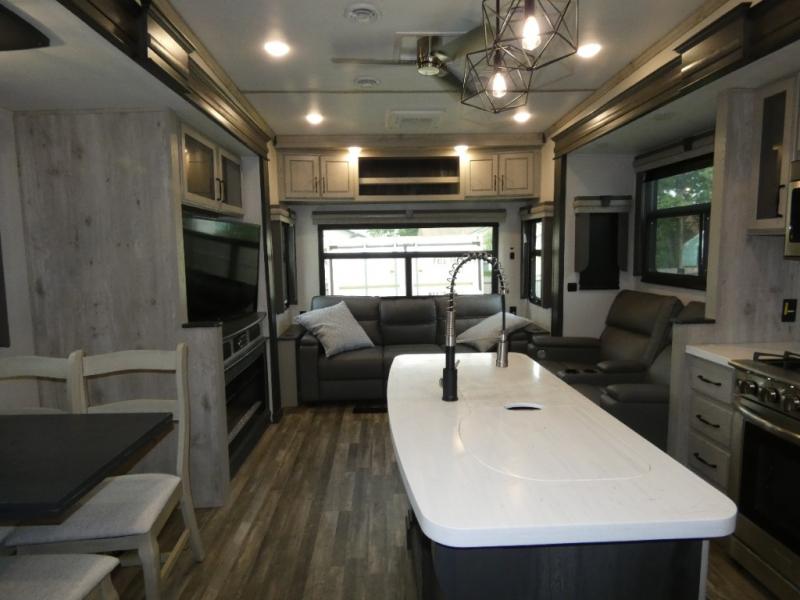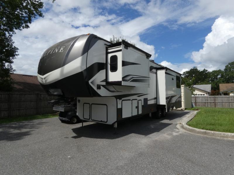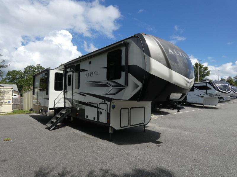 Luxury is not an option, it is a standard with each one of these Keystone RV Alpine fifth wheels! A 100" wide body construction, almost 7' tall slides, high ceilings, and panoramic frameless windows create an open, residential feeling. The Tru-Fit slide construction is more durable and minimizes motor structural stress, as well as resists leaking. Exclusive 12V color-coded wiring is different from conventional RV wiring in that it is easy to trace and clearly labeled to help savvy owners with DIY diagnosis/repair and helps dealer service techs troubleshoot/repair quickly which saves you time and money. The in-floor heat vents run straight through the unit and are typically positioned in low-traffic areas just like in your home for a more efficient air flow, plus it helps to keep the cabinet storage space. Come find your favorite model today!