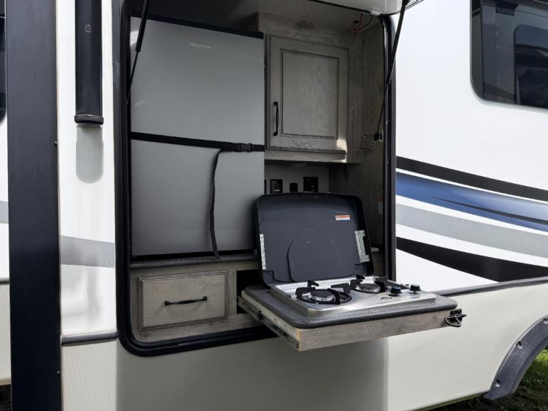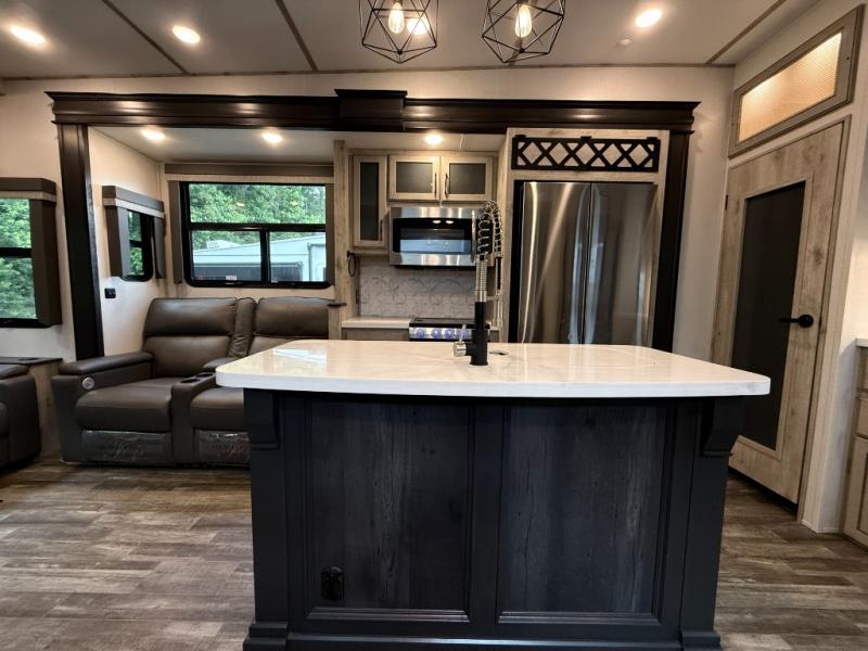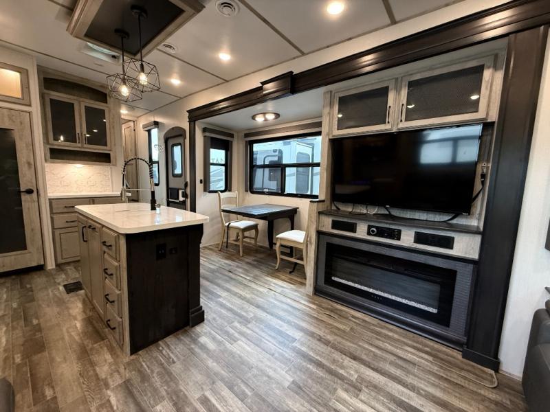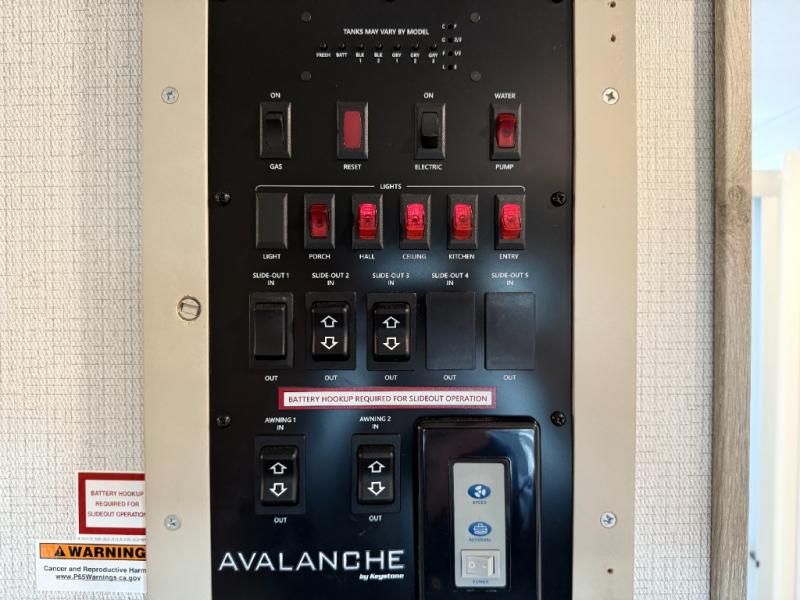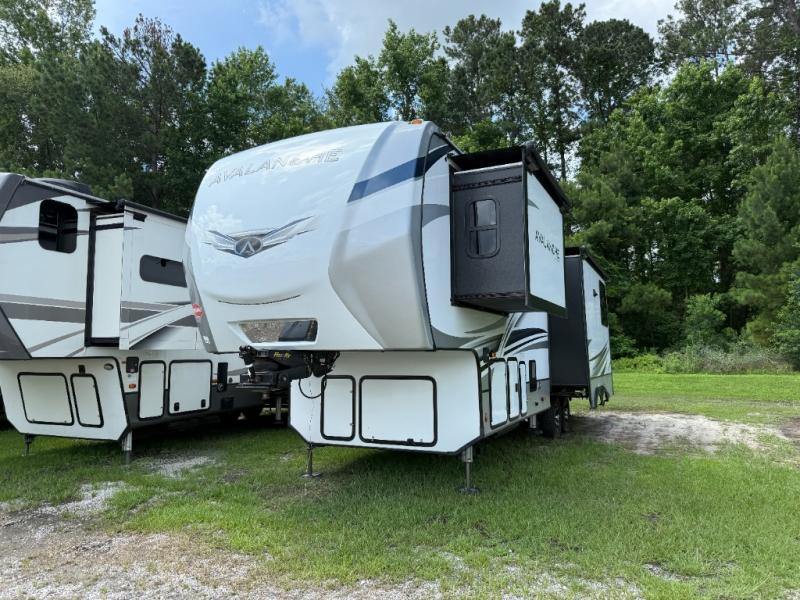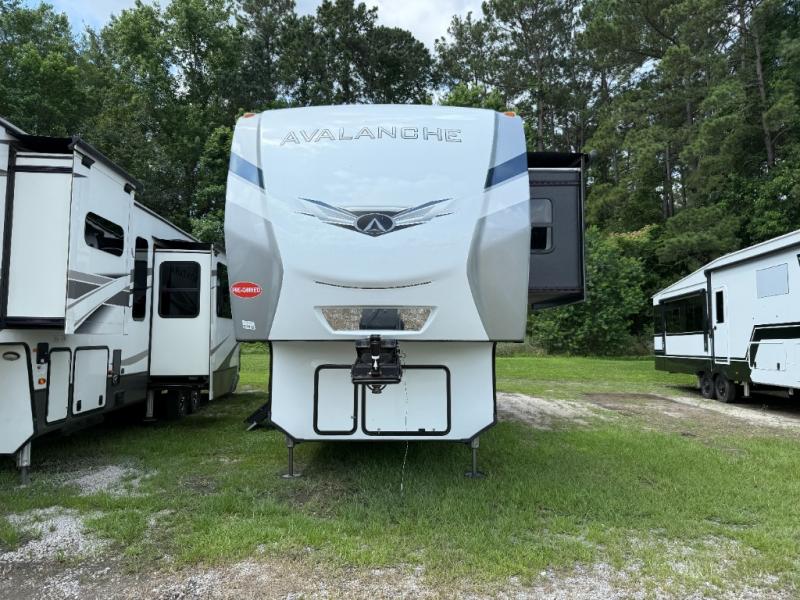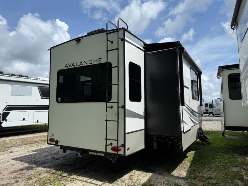 The Keystone Avalanche 302RS is a luxury fifth wheel built for couples who love comfort, entertaining, and extended stays. With triple slides, a spacious king bedroom, theater seating, and a fireplace, the interior provides a warm and welcoming retreat. Step outside to the Grill-N-Chill outdoor kitchen under the 11' awning, or enjoy full-season confidence with Polar Pack insulation and advanced construction features, making every camping trip unforgettable.