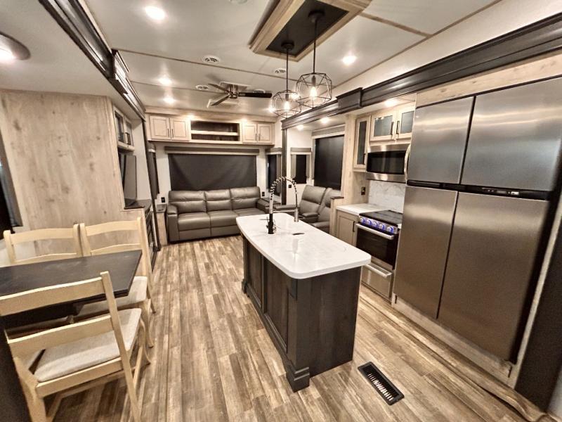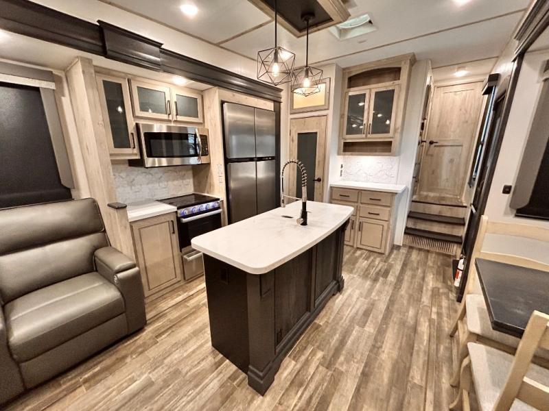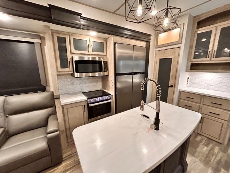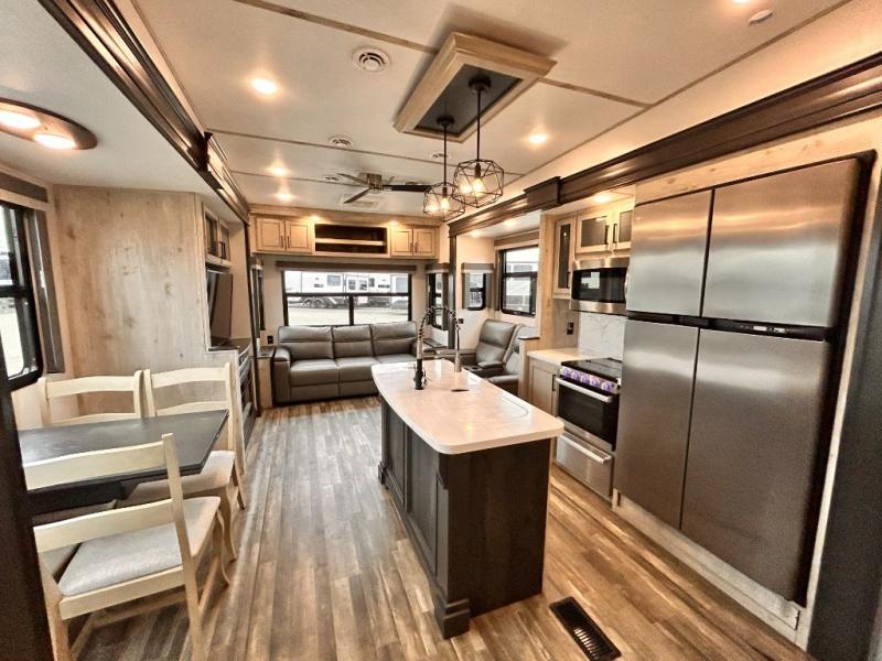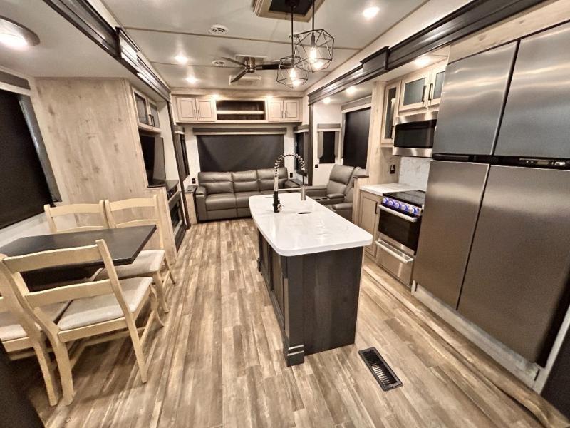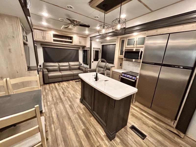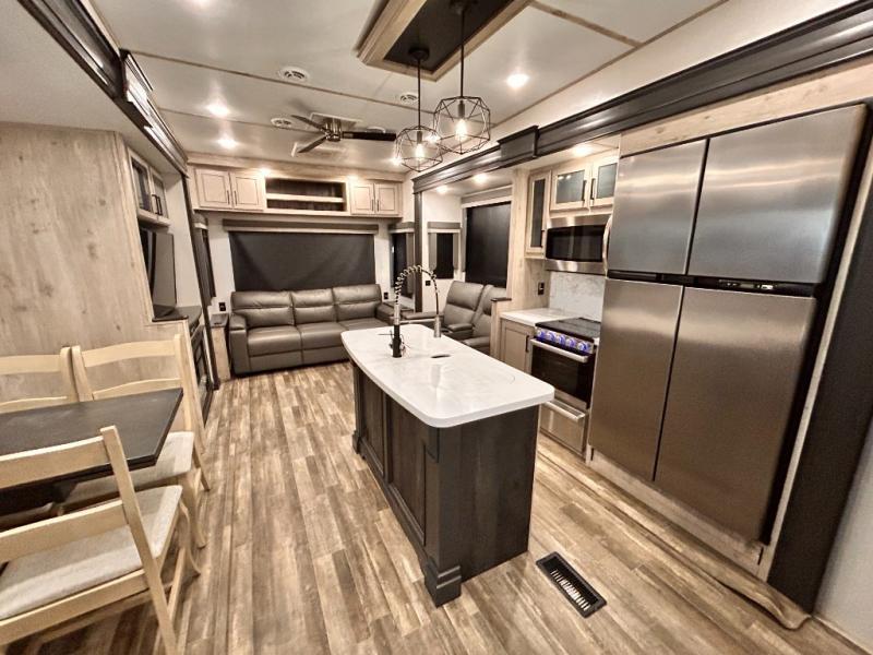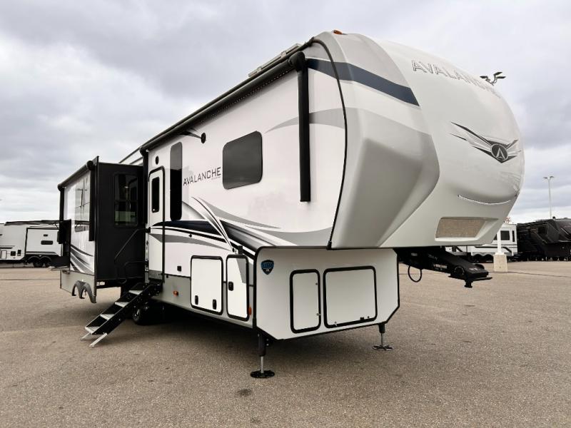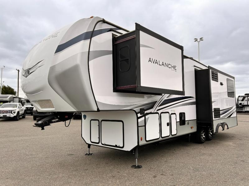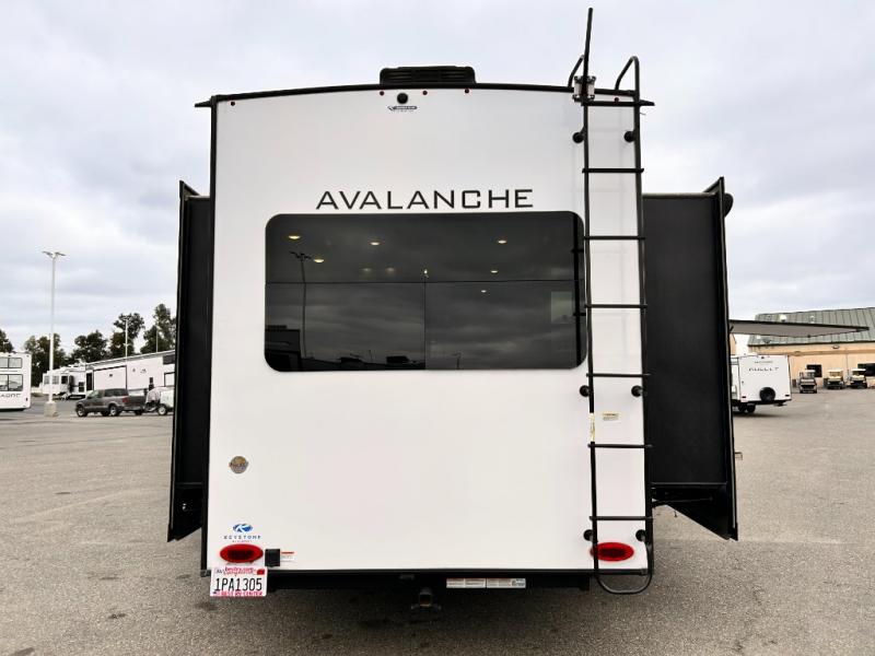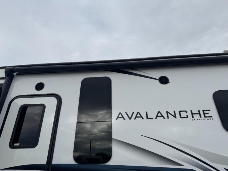 With any Keystone luxury full-profile Avalanche fifth wheel, you will experience wide-body construction that allows you to stretch out and stay awhile during any season thanks to the Polar Pack All Season Protection that includes a heated and enclosed underbelly, an Astro foil reflective layer on the roof, front and rear walls, and two static attic vents, plus more! The interior offers hardwood slide out fascia with wood accents, crown molding, plus your choice of modern interior design. There are many more Keystone exclusives, like the Tru-Fit slide construction, the in-floor heating ducts, the 4G LTE and Wi-Fi prep, and much more to bring you a full-packed, luxury fifth wheel!