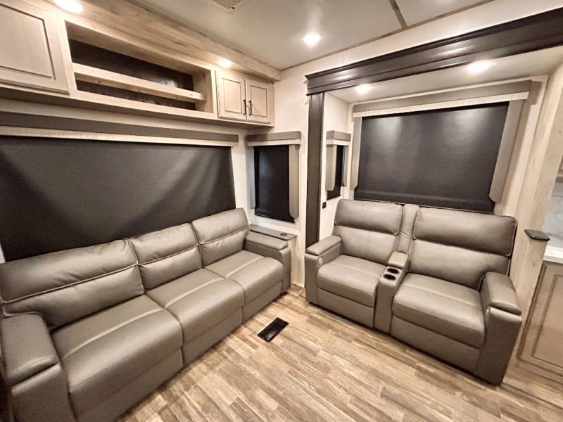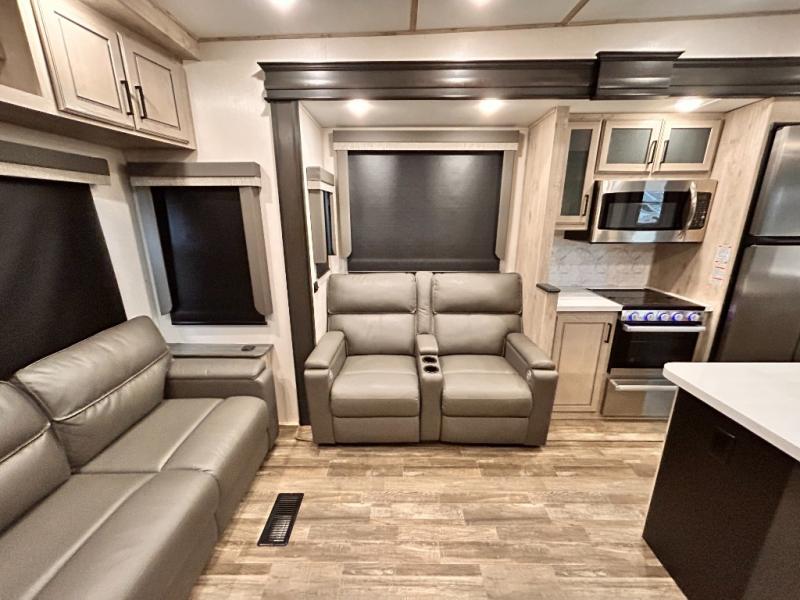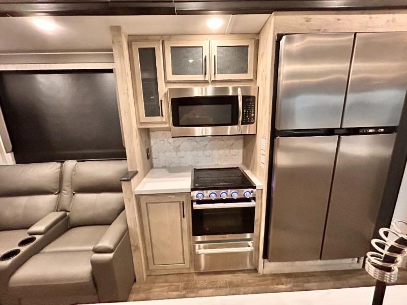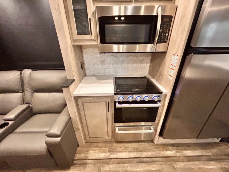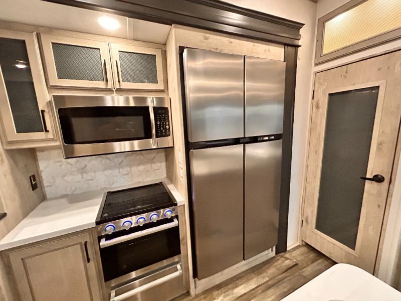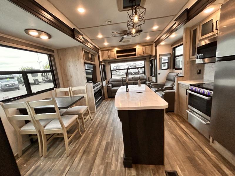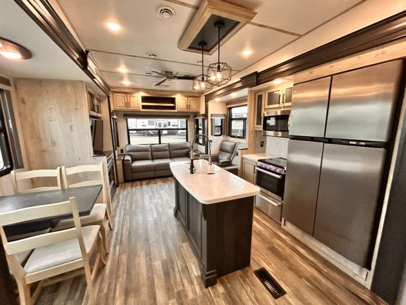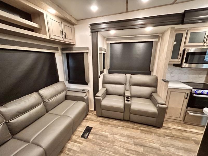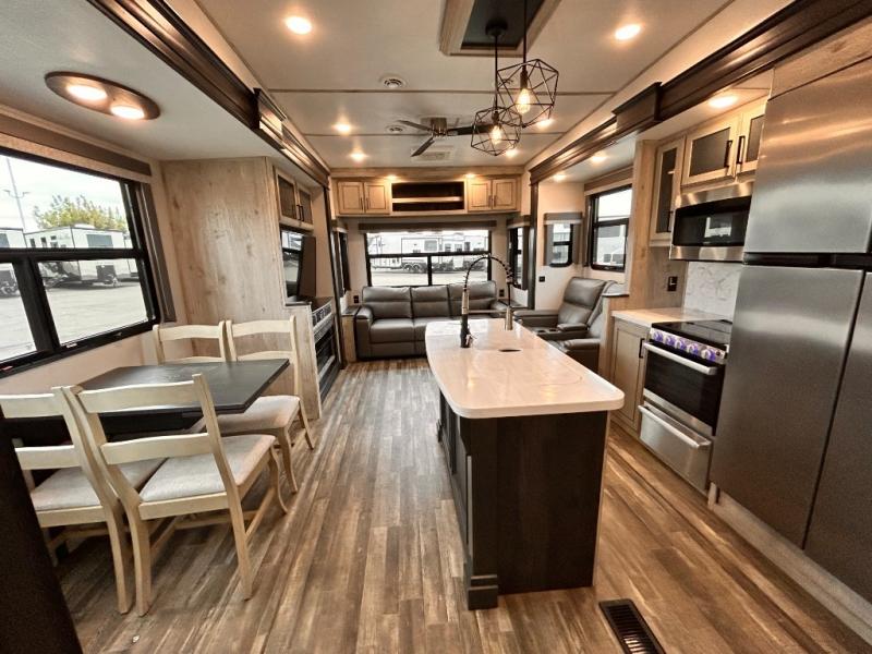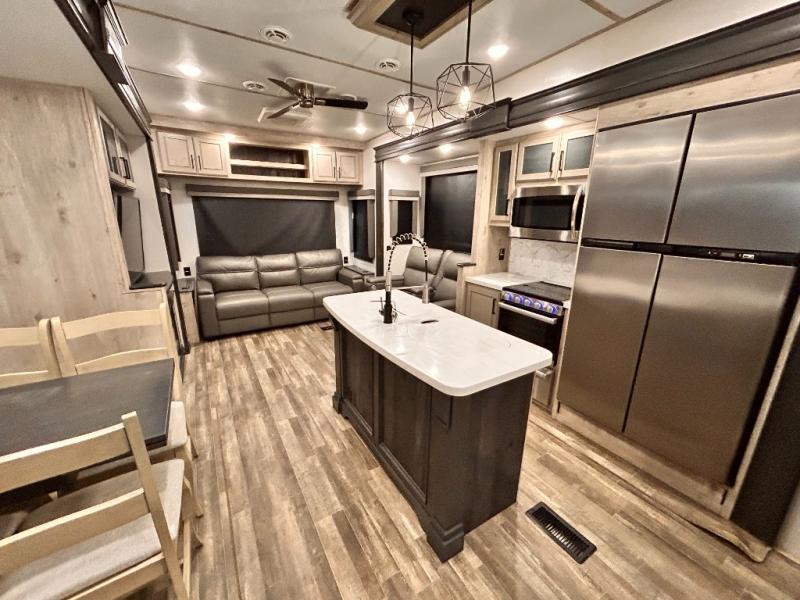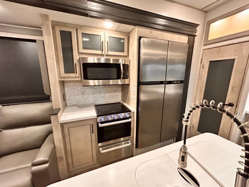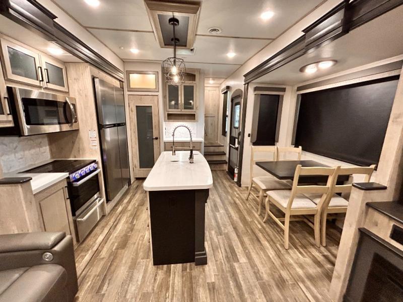With any Keystone luxury full-profile Avalanche fifth wheel, you will experience wide-body construction that allows you to stretch out and stay awhile during any season thanks to the Polar Pack All Season Protection that includes a heated and enclosed underbelly, an Astro foil reflective layer on the roof, front and rear walls, and two static attic vents, plus more! The interior offers hardwood slide out fascia with wood accents, crown molding, plus your choice of modern interior design. There are many more Keystone exclusives, like the Tru-Fit slide construction, the in-floor heating ducts, the 4G LTE and Wi-Fi prep, and much more to bring you a full-packed, luxury fifth wheel!