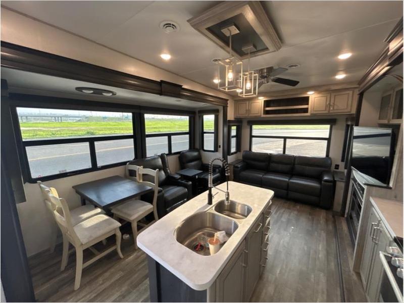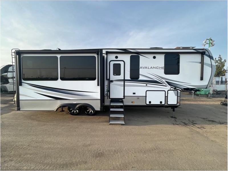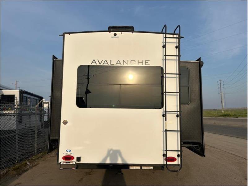 With any Keystone luxury full-profile Avalanche fifth wheel, you will experience wide-body construction that allows you to stretch out and stay awhile during any season thanks to the Polar Pack All Season Protection that includes a heated and enclosed underbelly, an Astro foil reflective layer on the roof, front and rear walls, and two static attic vents, plus more! The interior offers hardwood slide out fascia with wood accents, crown molding, plus your choice of modern interior design. There are many more Keystone exclusives, like the Tru-Fit slide construction, the in-floor heating ducts, the 4G LTE and Wi-Fi prep, and much more to bring you a full-packed, luxury fifth wheel!