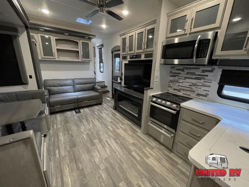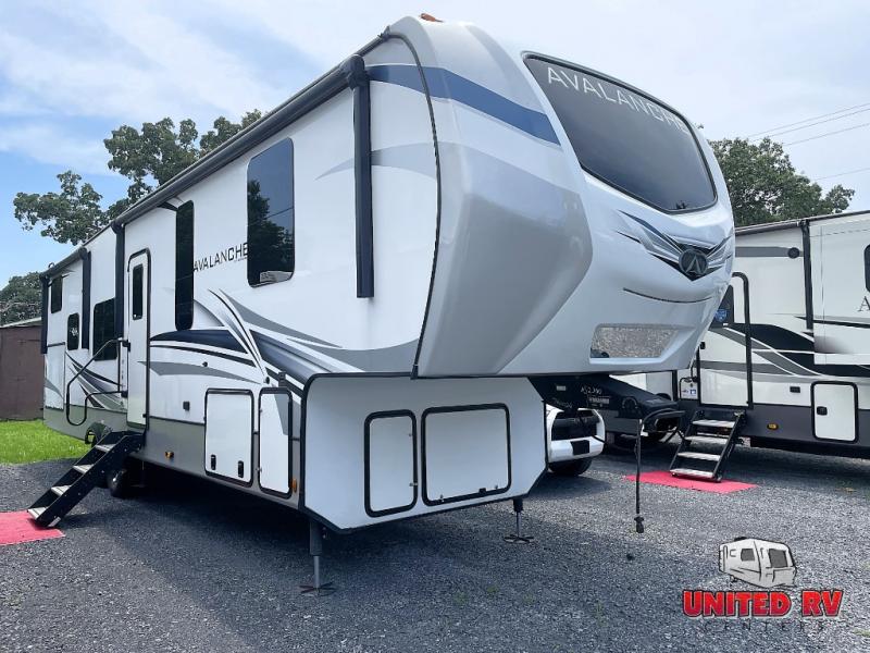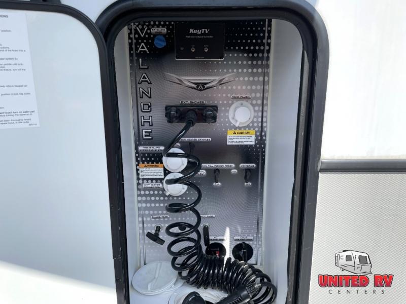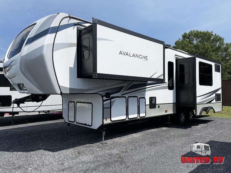 With any Keystone luxury full-profile Avalanche fifth wheel, you will experience wide-body construction that allows you to stretch out and stay awhile during any season thanks to the Polar Pack All Season Protection that includes a heated and enclosed underbelly, an Astro foil reflective layer on the roof, front and rear walls, and two static attic vents, plus more! The interior offers hardwood slide out fascia with wood accents, crown molding, plus your choice of modern interior design. There are many more Keystone exclusives, like the Tru-Fit slide construction, the in-floor heating ducts, the 4G LTE and Wi-Fi prep, and much more to bring you a full-packed, luxury fifth wheel!