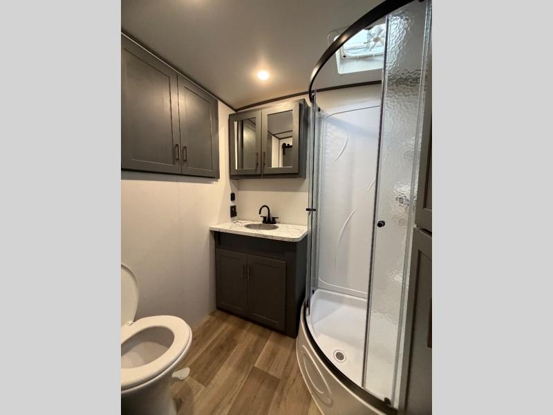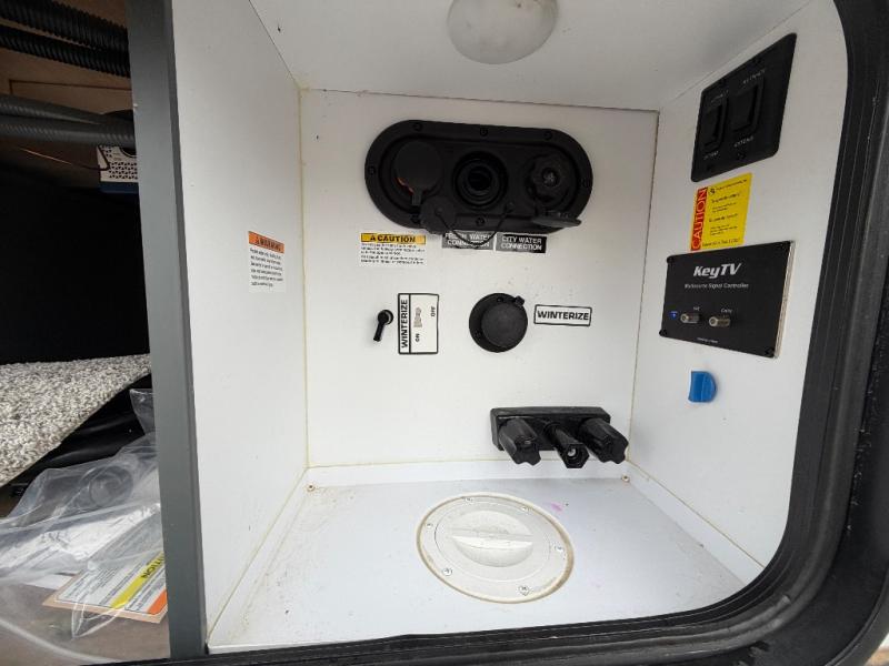 With any Keystone Bullet travel trailer you can experience ultra-lightweight camping with style! The interior design and functionality will impress you, and the stunning cabinetry, the vaulted ceilings, and the built-in laundry chute are just a few of the highlights. Each is built with Hyper Deck RV flooring that is stronger, lighter and more resilient than traditional wood laminated flooring, a 51 cu. ft. pass-through storage compartment which provides 25% more storage space and has a 40" wider door meaning easier access and more room for supplies, and a docking station, an easily accessible convenience center with water connections, water heater bypass, KeyTV hookups, stabilizer jack switches and winterization access. You will also find a Giggy box, a weather protected, labeled, and fused electric box, plus more Keystone Exclusives. Start your glamorous and carefree trip today in a Bullet!