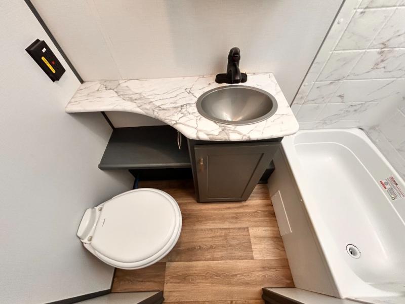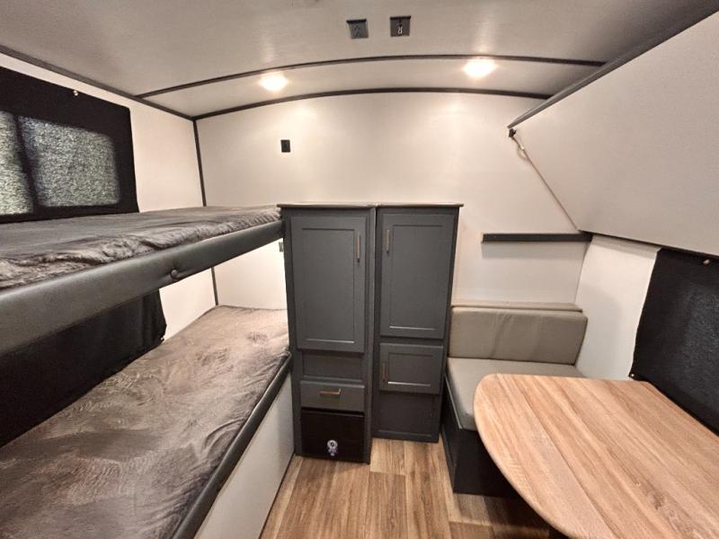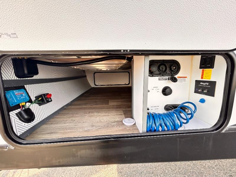 With any Keystone Bullet travel trailer you can experience ultra-lightweight camping with style! The interior design and functionality will impress you, and the stunning cabinetry, the vaulted ceilings, and the built-in laundry chute are just a few of the highlights. Each is built with Hyper Deck RV flooring that is stronger, lighter and more resilient than traditional wood laminated flooring, a 51 cu. ft. pass-through storage compartment which provides 25% more storage space and has a 40" wider door meaning easier access and more room for supplies, and a docking station, an easily accessible convenience center with water connections, water heater bypass, KeyTV hookups, stabilizer jack switches and winterization access. You will also find a Giggy box, a weather protected, labeled, and fused electric box, plus more Keystone Exclusives. Start your glamorous and carefree trip today in a Bullet!