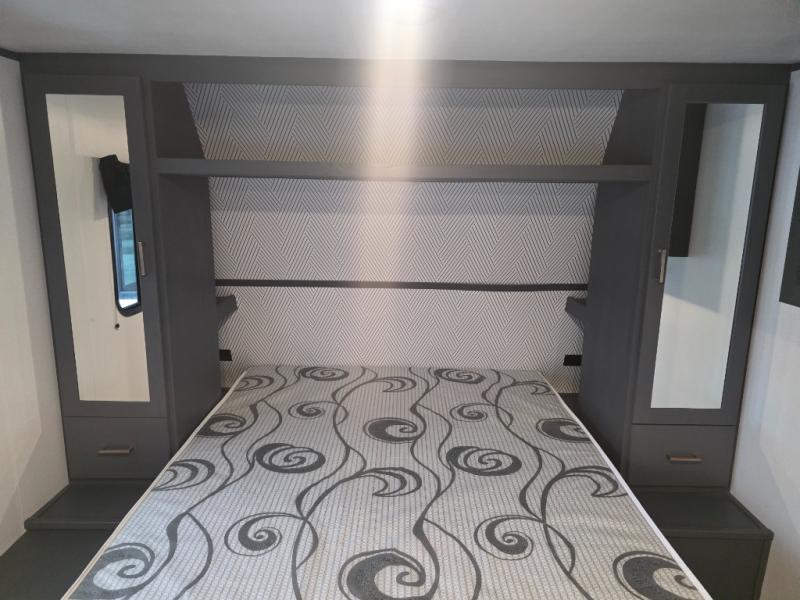 Each Bullet Crossfire by Keystone is constructed with a NORCO HSLA steel/automotive deposition coated frame assembled with huck bolts for durability. The one-piece ABS enclosed underbelly will help extend your camping season, and the Dexter E-Z Lube axles will provide smooth towing from home to campground. Setting up your trailer will be a breeze with the electric tongue jack and four electric stabilizer jacks, and there is an electric awning with adjustable arms and LED lighting for an inviting outdoor living space. The affordable, high-quality RV solar energy system, SolarFlex 200 comes standard with each model and will allow you to go off-grid when you want. Inside, you'll find fabric night shades, Beauflor with woven flooring in the slides, full depth cabinets with full extension drawer guides, and many more comforts.