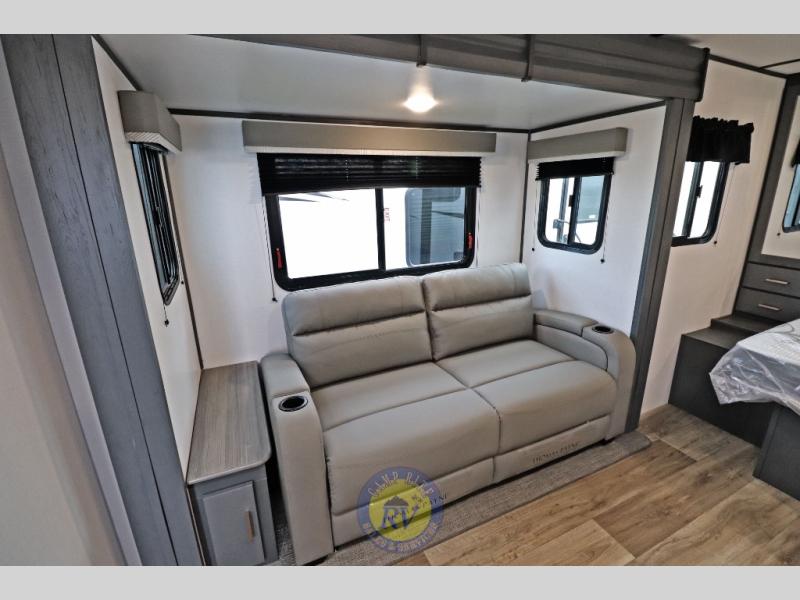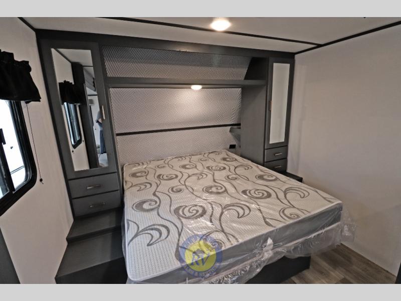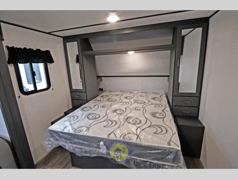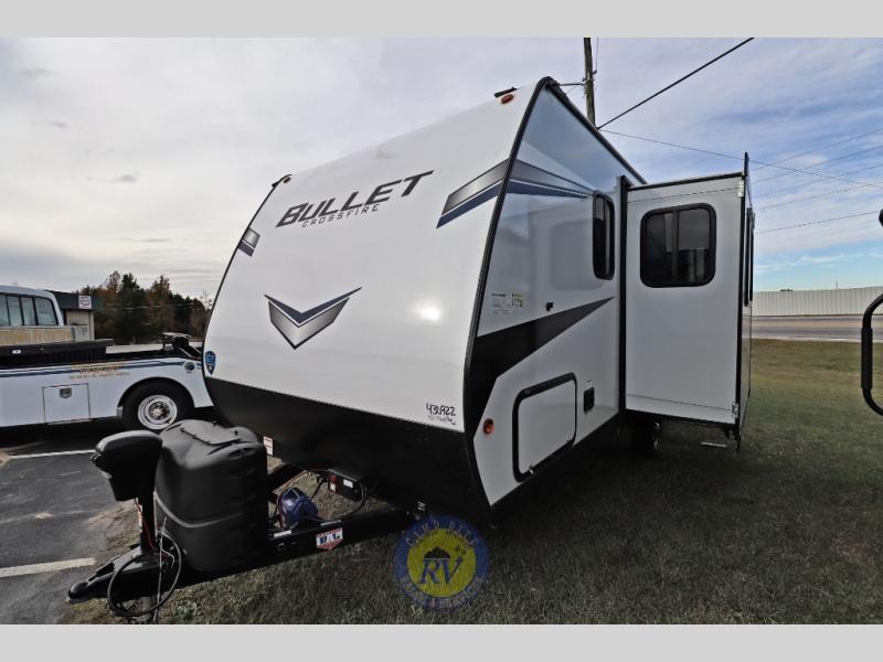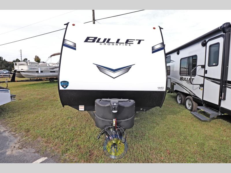 Each Bullet Crossfire by Keystone is constructed with a NORCO HSLA steel/automotive deposition coated frame assembled with huck bolts for durability. The one-piece ABS enclosed underbelly will help extend your camping season, and the Dexter E-Z Lube axles will provide smooth towing from home to campground. Setting up your trailer will be a breeze with the electric tongue jack and four electric stabilizer jacks, and there is an electric awning with adjustable arms and LED lighting for an inviting outdoor living space. The affordable, high-quality RV solar energy system, SolarFlex 200 comes standard with each model and will allow you to go off-grid when you want. Inside, you'll find fabric night shades, Beauflor with woven flooring in the slides, full depth cabinets with full extension drawer guides, and many more comforts.
