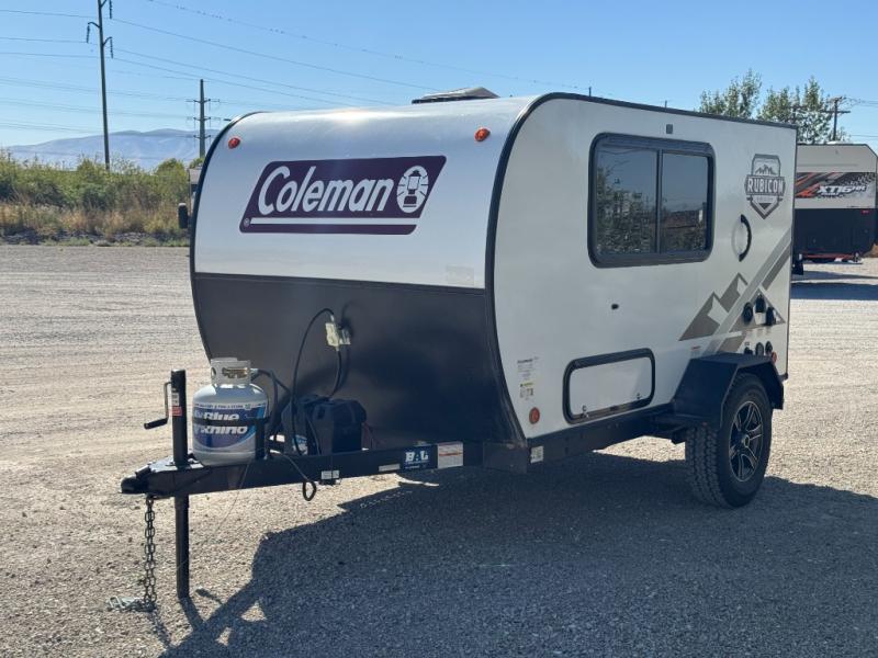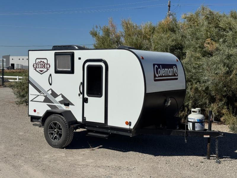 For your lightweight travel, choose any Coleman Rubicon 1200 Series travel trailer by Dutchmen RV. These units are easy to tow with just about any vehicle, and easy to store due to their size. And, both units are under 2,000 lbs. Each features aluminum framing, LED interior lighting, all terrain tires and aluminum rims, plus a single torsion axle for ease of towing. You will also appreciate stabilizer jacks when setting up, a side port for a solar panel. a folding grab handle at the entryway, and baggage doors with magnetic catches to keep your things secure when put away. Come select the model that is right for your family today!