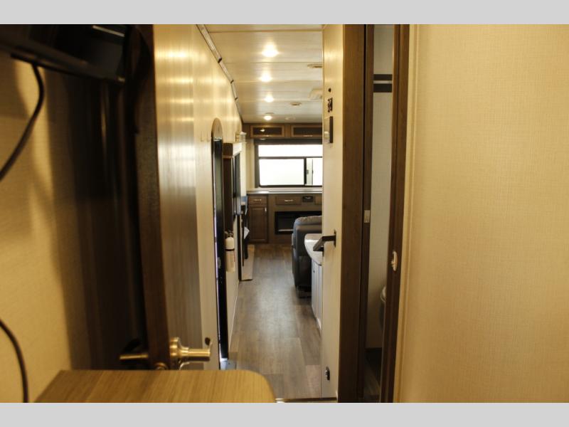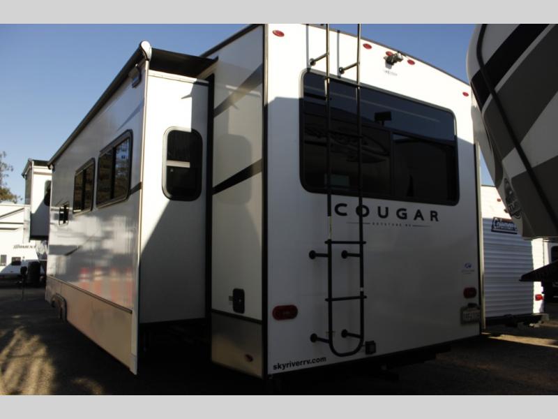 Spend more time having fun and less time worrying about your RV with the Keystone Cougar fifth wheel! These units have all that you will need for excellent vacations. The interior comes with 5/8" one-piece DynaSpan® flooring, tall slide outs for added comfort and head room, night roller shades throughout, and residential, raised-panel hardwood cabinet doors and drawers. You will also enjoy decorative crown molding, a 5,500 BTU electric fireplace with thermostat control and remote, and a Max Air exhaust fan with rain sensor. The exterior is also fully outfitted with a convenience center, friction-hinge entry door, electric four-point auto leveling system, and LCI® SolidStep® on the main entry. There is a full pass-through storage with slam-latch baggage doors, an industry-best 80-gallon fresh tank capacity, a 2" accessory hitch with 300-LB storage capacity, and an outside shower.