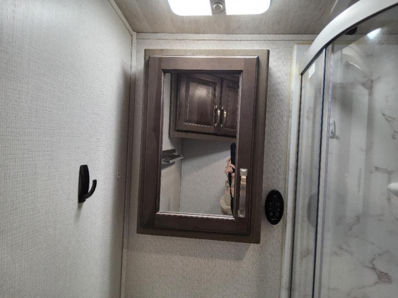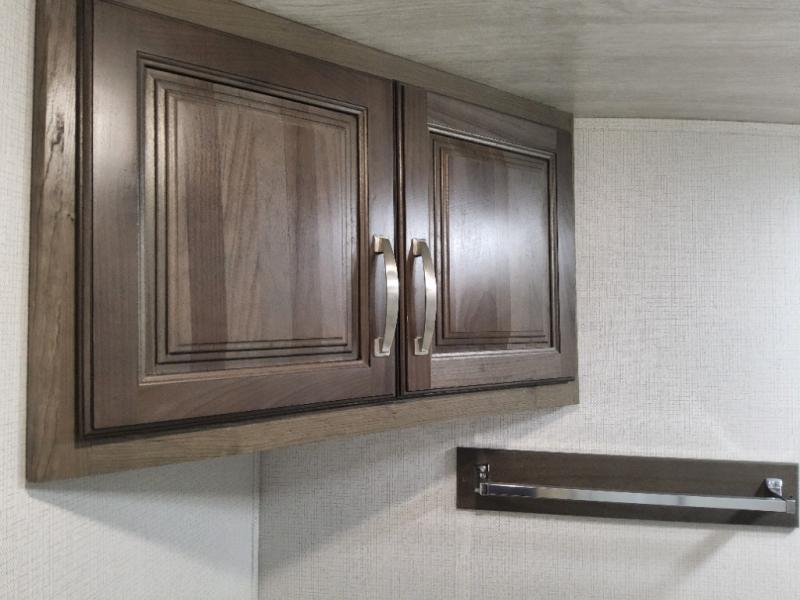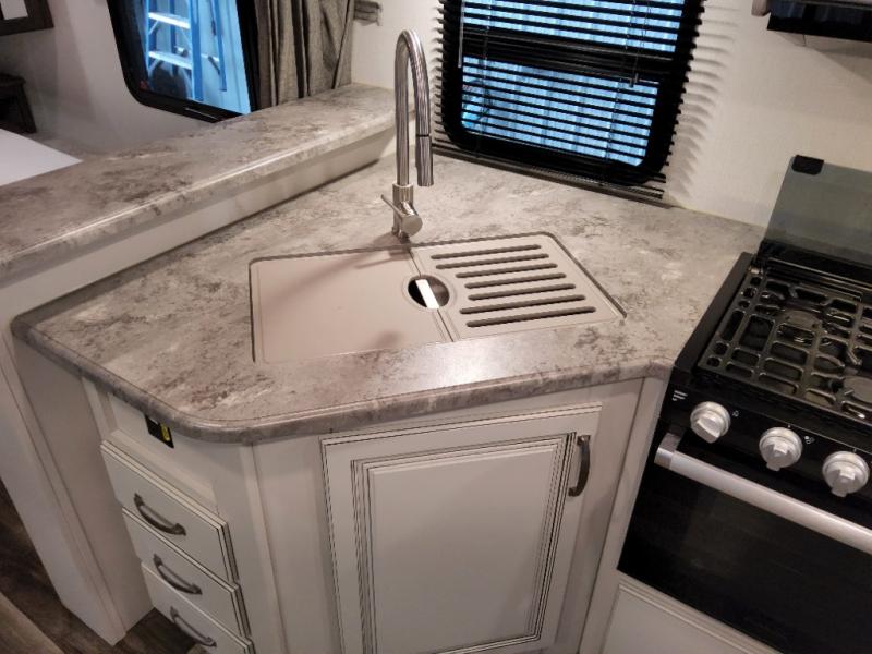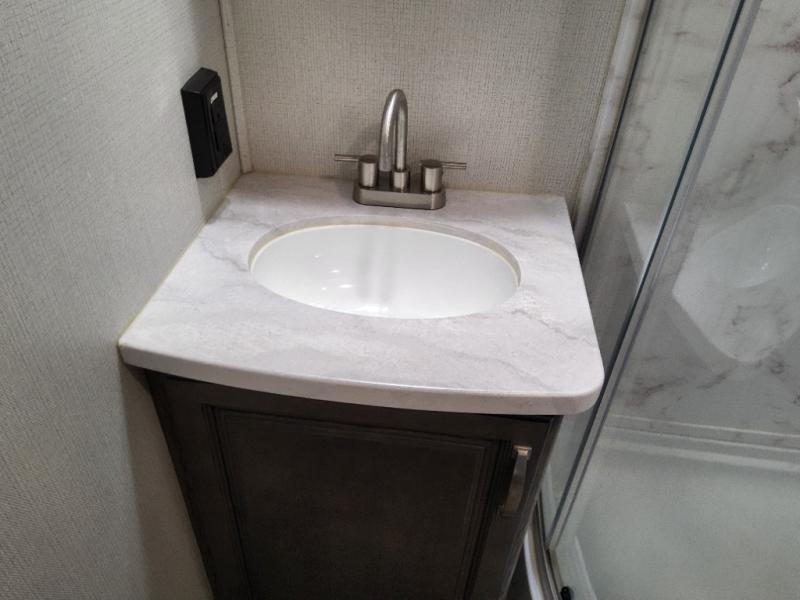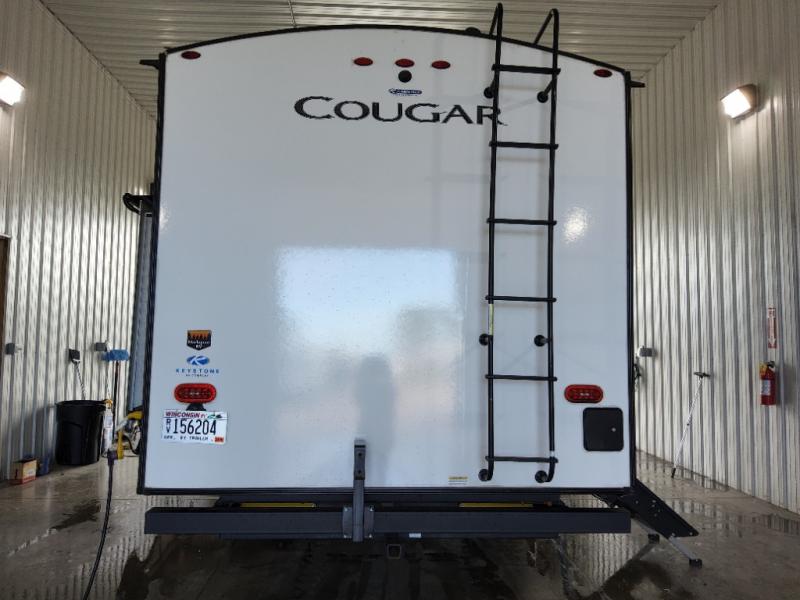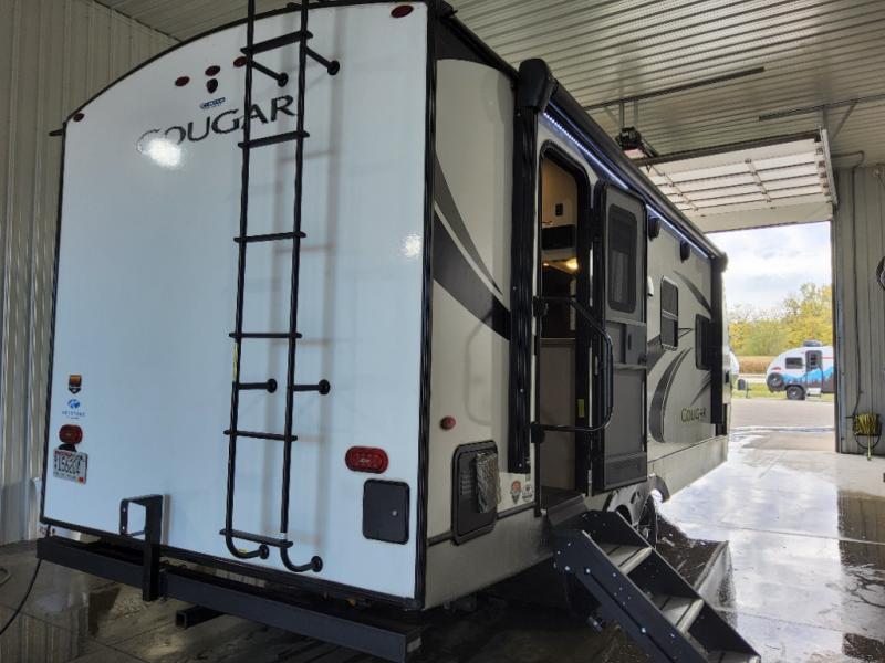 Imagine waking up from your own king bed to enjoy a hike, a bike ride, or a relaxing time outside under the 16' power awning while you wait for your spouse to wake up. With this Cougar Half-Ton travel trailer, you can make breakfast inside with full amenities and eat at the U-shaped dinette while looking out at the views. You will be able to get cleaned up in the full bathroom without having to wait your turn for the public facilities. Plus, there is a privacy curtain for the bedroom so that you have an additional place to get ready, and the bar top gives you extra room to sit down with a hot meal.