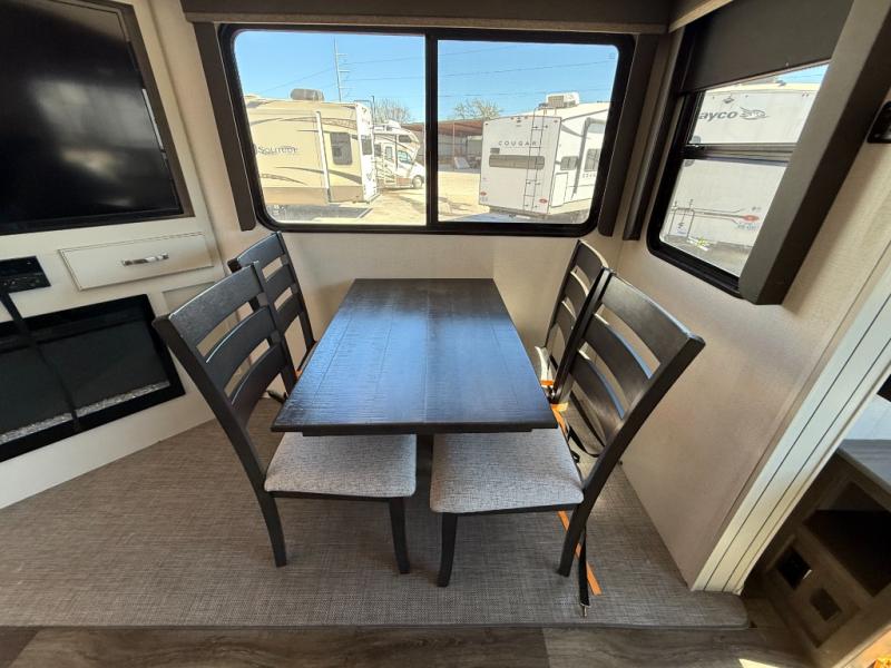 When you are ready to enjoy the fresh outdoor air, you'll want this Cougar Half-Ton fifth wheel to be there with you! The interior will feel spacious and comfortable because of the opposing slides, and the booth dinette, and the 68" tri-fold sleeper sofa. You can sit down and chat, or you can head outside to grab some fresh air underneath the 10' power awning.