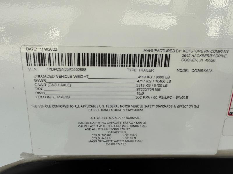 Used 2023 Keystone RV Cougar Half-Ton 29RKS Fifth Wheel