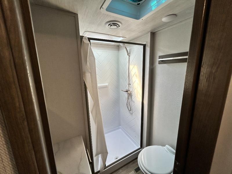 The Cougar Sport structural I-beam frame with stamped steel cross-members and outriggers, plus its laminated sidewalls with five-sided aluminum superstrucure and Alpha Super Flex roof membrane are what active RVers love about the construction of the Cougar line, and the Cougar Sport limited edition models are no exception when it comes to a great package, as well as being smaller and lighter weight than their big brother Cougar models. A one-piece, heated and enclosed polypropylene underbelly means a longer camping season. On the inside, residential shaker style hardwood cabinet doors and decorative crown molding, plus seamless pressed countertops and an on-demand water heater will make your unit feel even more like home. You are also sure to appreciate the Barnwood style decorative accent wall behind the bed, a porcelain foot flush toilet in the bathroom, plus residential kitchen hardware and so much more.