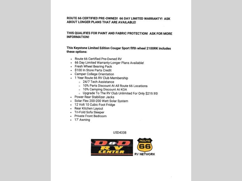 - Route 66 Certified Pre-Owned RV