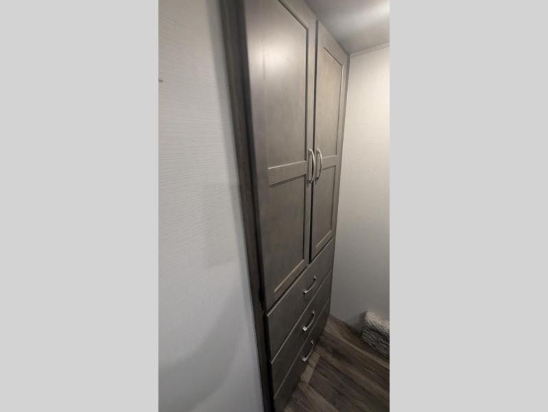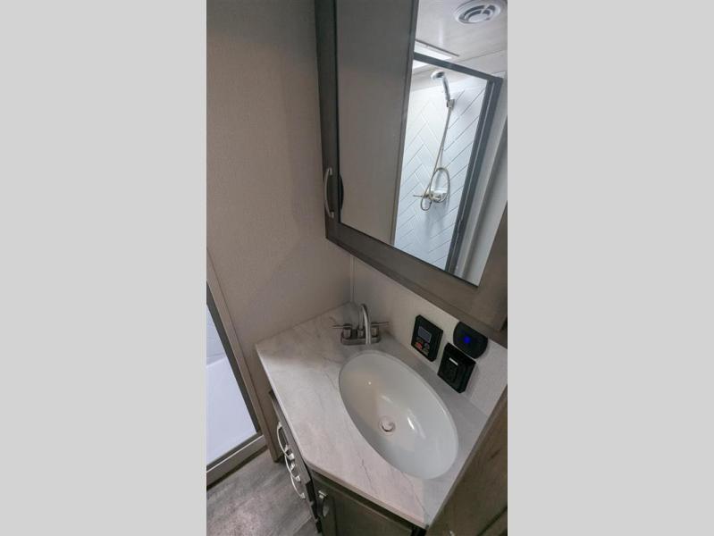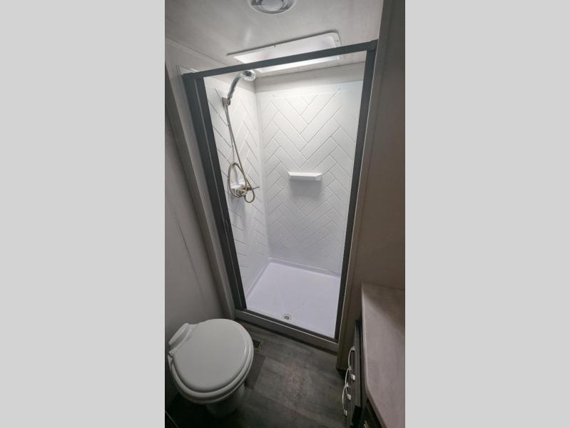 The Cougar Sport structural I-beam frame with stamped steel cross-members and outriggers, plus its laminated sidewalls with five-sided aluminum superstrucure and Alpha Super Flex roof membrane are what active RVers love about the construction of the Cougar line, and the Cougar Sport limited edition models are no exception when it comes to a great package, as well as being smaller and lighter weight than their big brother Cougar models. A one-piece, heated and enclosed polypropylene underbelly means a longer camping season. On the inside, residential shaker style hardwood cabinet doors and decorative crown moulding, plus seamless pressed countertops and an on-demand water heater will make your unit feel even more like home. You are also sure to appreciate the Barnwood style decorative accent wall behind the bed, a porcelain foot flush toilet in the bathroom, plus residential kitchen hardware and so much more.