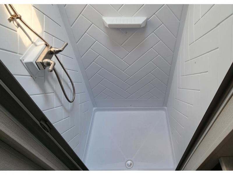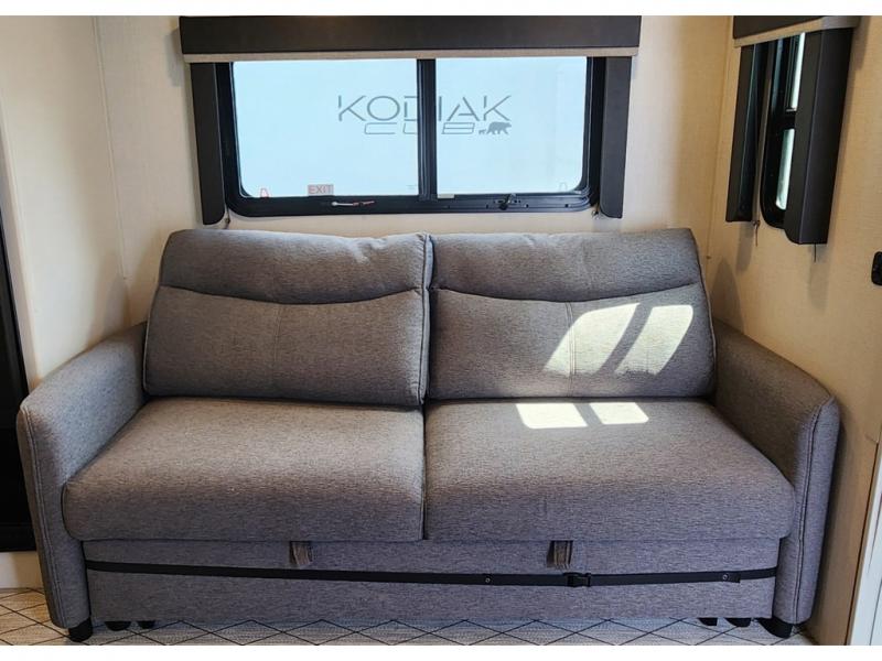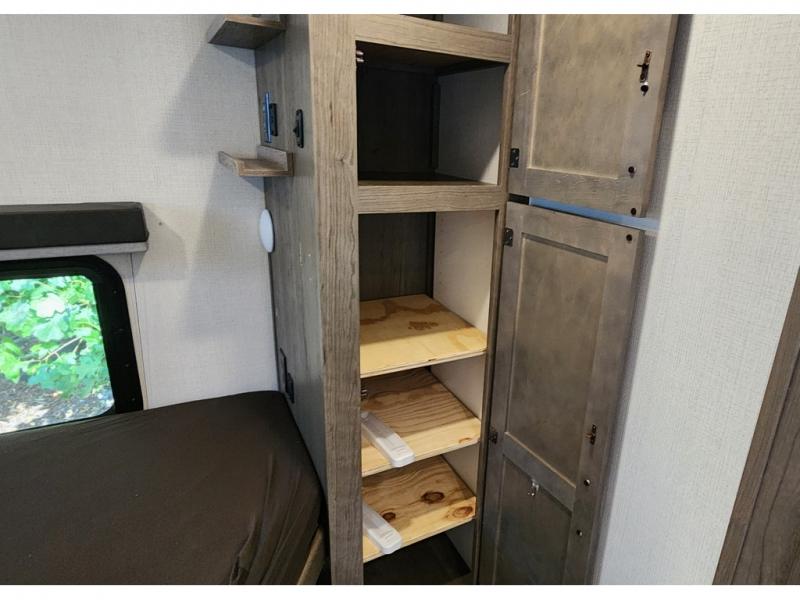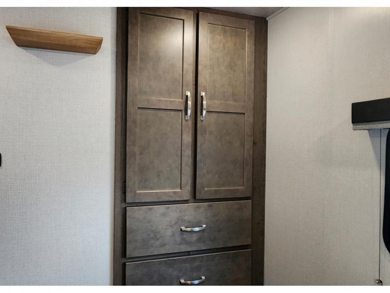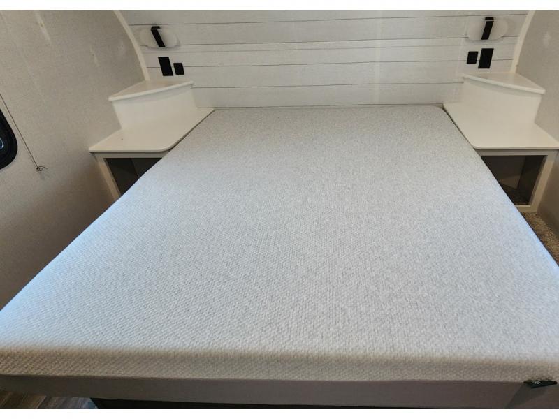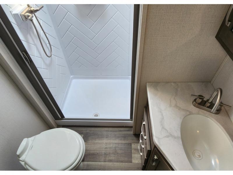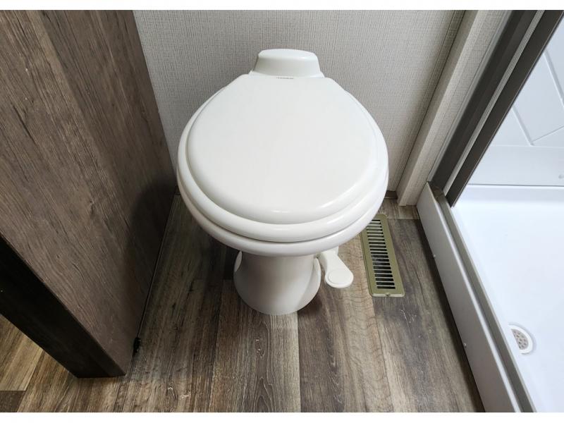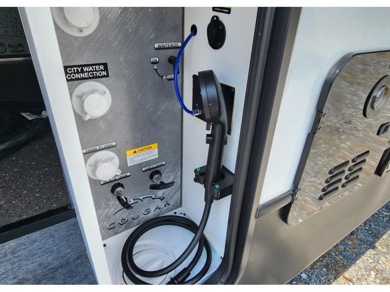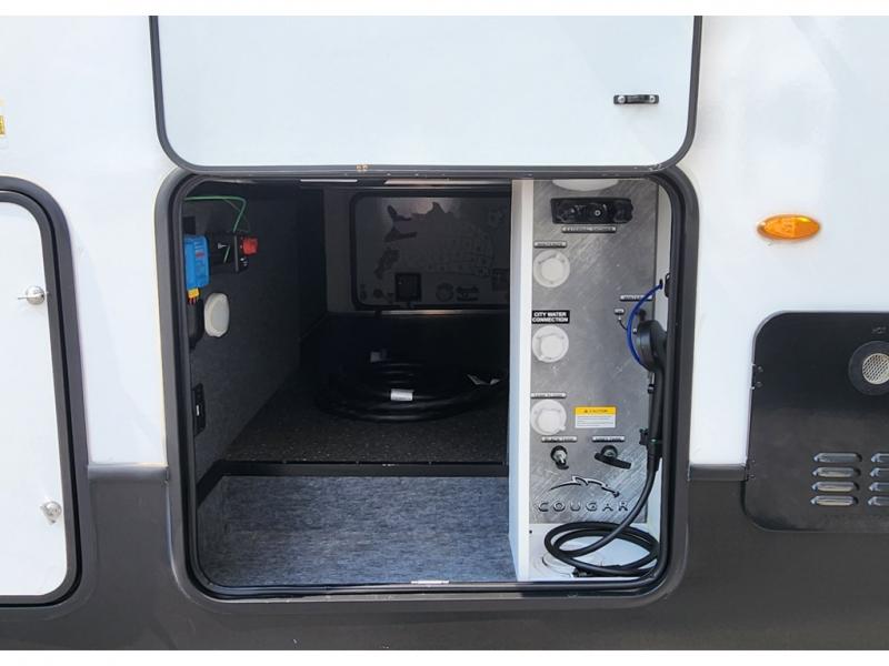 The Cougar Sport structural I-beam frame with stamped steel cross-members and outriggers, plus its laminated sidewalls with five-sided aluminum superstrucure and Alpha Super Flex roof membrane are what active RVers love about the construction of the Cougar line, and the Cougar Sport limited edition models are no exception when it comes to a great package, as well as being smaller and lighter weight than their big brother Cougar models. A one-piece, heated and enclosed polypropylene underbelly means a longer camping season. On the inside, residential shaker style hardwood cabinet doors and decorative crown moulding, plus seamless pressed countertops and an on-demand water heater will make your unit feel even more like home. You are also sure to appreciate the Barnwood style decorative accent wall behind the bed, a porcelain foot flush toilet in the bathroom, plus residential kitchen hardware and so much more.