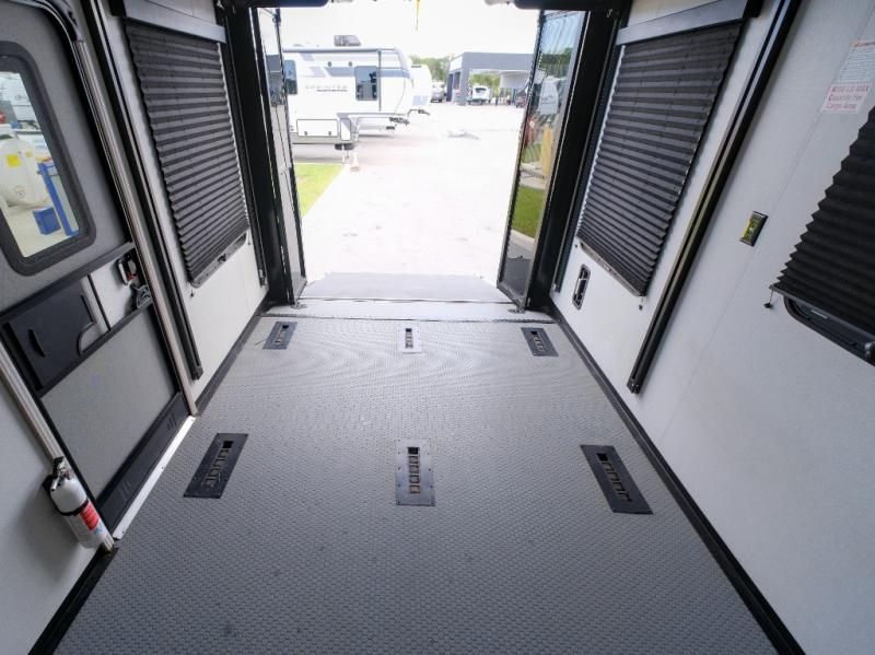 Get your adrenaline pumping with any one of these Keystone RV Fuzion fifth wheel toy haulers! The frame welded, Adjust-A-Trac tie-downs have 38 points to fully secure your toys as you travel, and the extended garage lengths have outside storage so you can haul bigger toys. A fully enclosed fuel pump station is integrated with the iN-Command smart RV control system with Global Connect. The equalizer six-point hydraulic leveling system makes setting up a breeze. And the exclusive Omni-Chill technology offers high-efficiency air conditioning and maximum cooling. The interior provides fiberglass backed linoleum flooring, extra-tall slide height, solid wood cabinet and drawer frames, and extra tall ceilings with crown molding to mention a few attention to details features. Choose a Fuzion because you want to be seen with the best RV garage for power sports enthusiasts and enjoy comfort and amenities when you are away!