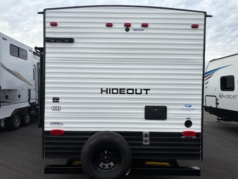 The Keystone Hideout travel trailer and destination trailer will be just what the doctor ordered for a stress-free holiday at your favorite campsite! There are a few exclusive features that you'll only find on a Keystone product, like the color-coded unified wiring, the preparations for 4G LTE and Wi-Fi, the Tuf-Lok™ thermoplastic duct joiners, the in-floor heating ducts, and the Tru-fit™ slide construction. Each model has a power awning for some shade in the afternoon, and the tinted safety glass windows will prevent the harmful UV rays from getting inside. You'll also have blackout night shades that you can close when you want privacy, and the SolarFlex 200 is a solar power system that will refill your battery to operate onboard 12V systems with just one day of peak sun exposure.