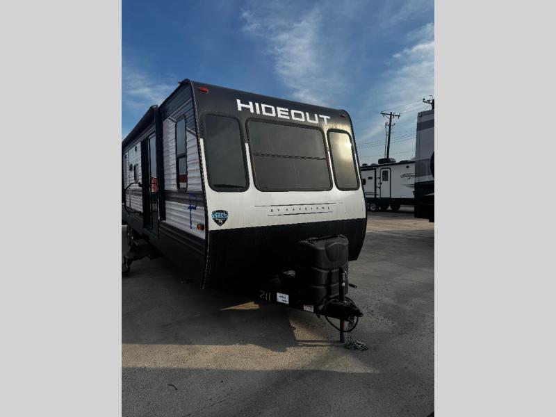 The Keystone Hideout travel trailer and destination trailer will be just what the doctor ordered for a stress-free holiday at your favorite campsite! There are a few exclusive features that you'll only find on a Keystone product, like the color-coded unified wiring, the preparations for 4G LTE and Wi-Fi, the Tuf-Lok™ thermoplastic duct joiners, the in-floor heating ducts, and the Tru-fit™ slide construction. Each model has a power awning for some shade in the afternoon, and the tinted safety glass windows will prevent the harmful UV rays from getting inside. You'll also have blackout night shades that you can close when you want privacy, and the SolarFlex 200 is a solar power system that will refill your battery to operate onboard 12V systems with just one day of peak sun exposure.