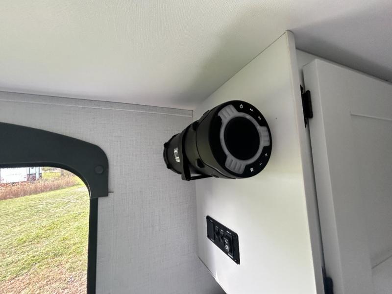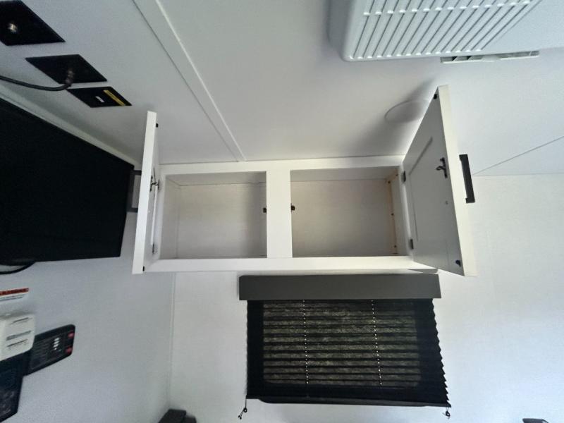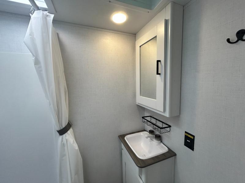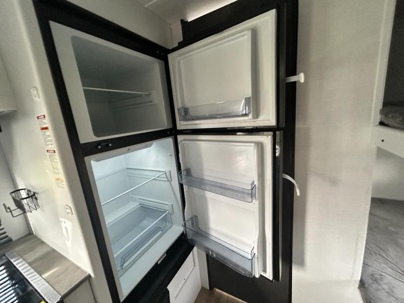 This trailer will fit perfectly for a group of five or less thanks to all the sleeping space! The owners will have a queen-size bed, and others can choose between the rear corner bunk beds or the booth dinette once setup for bedtime. There is a full bathroom for convenience when changing and getting cleaned up, a galley kitchen with a two burner gas range and microwave to make warm meals, plus a 7.7 cu. ft. refrigerator for the cold items. And you can stow your larger camping items in the exterior pass-through compartment.