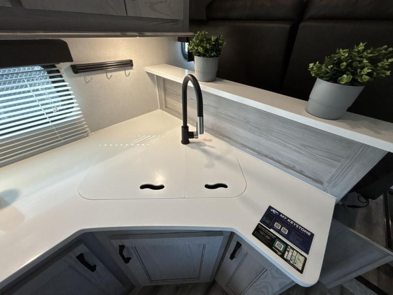 Live the high life with a Keystone Montana High Country fifth wheel! You'll have all the luxury you need with these units. They come with a Road Armor™ shock absorbing hitch pin, a MaxTurn™ front cap with KeyShield™ automotive-grade paint, a fully walkable roof with Alpha seamless TPO membrane system, and an insulated underbelly with forced hot air and electric tank heaters. The Road Armor™ suspension has 360° vibration control for a smooth ride, and the Ground Control® four-point electric auto-leveling with hitch memory will make set-up quite easy. The interior is elegantly appointed with the Thomas Payne Collection furniture, hardwood decorative slide-out fascia, Beauflor® vinyl throughout with Syntec® woven flooring in main slide outs, accent crown molding, and Mystic Ash cabinetry. You'll also have a central vacuum that you can use to clean up unforeseen messes.