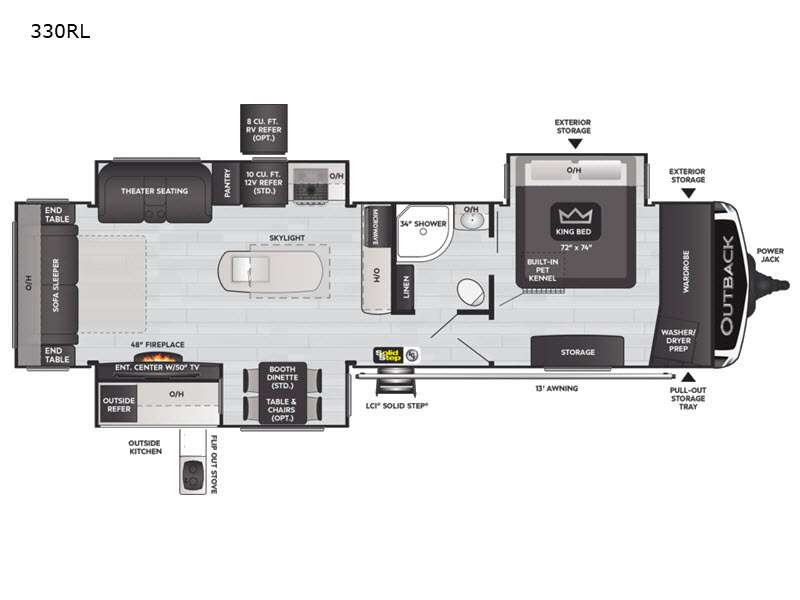 Keystone Outback travel trailer 330RL highlights: