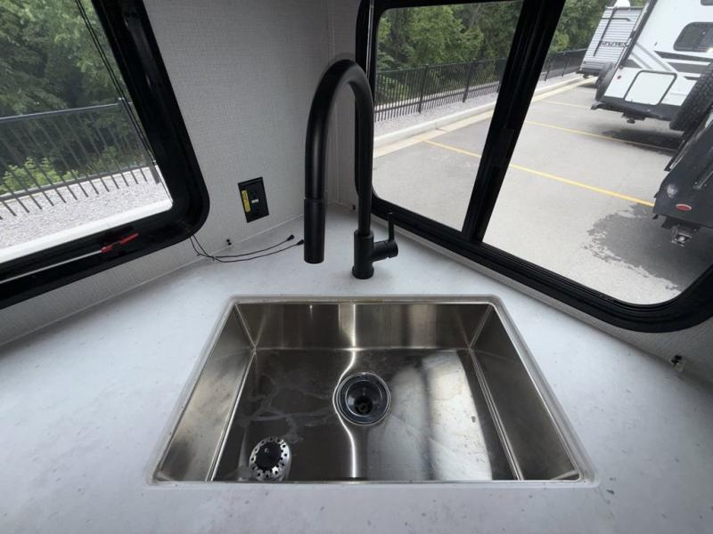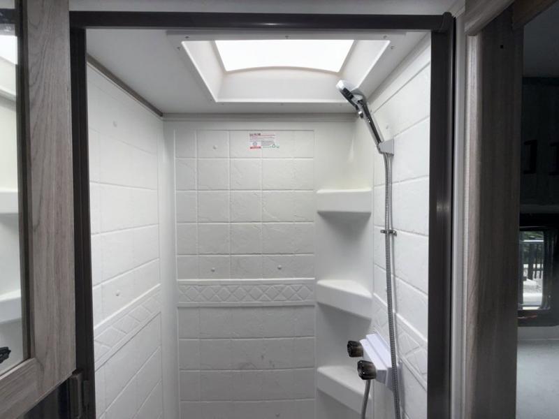 The Passport SL travel trailers by Keystone RV come in a compact design with travel-friendly lengths that are lightweight and easy to tow behind many smaller crossover SUVs. You will find several residential-style features such as durable Beauflor® vinyl flooring, upgraded window treatments and valances, and bathroom countertops. The exterior shower with hot and cold water is very useful as you get cleaned up before entering the RV, wash your pets, or even rinse a few dishes outside. The Passport also now contains a HyperDeck flooring system which is a high-performance, water-resistant RV floor that comes as a breakthrough design from the Keystone Innovation Lab. This flooring is more resilient, stronger, and lighter than traditional laminated wood construction.