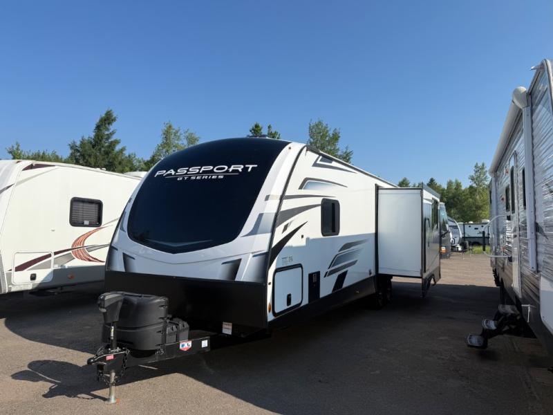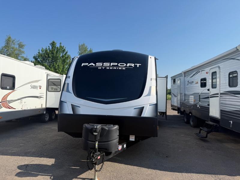Each one of these Keystone RV Passport GT travel trailers offer grand style and multi-functional features! They have best-in-class storage for big things like paddle boards and small things like sleeping bags. There's no need for cordless drills and bending over to put the jacks down, simply push a button and the power stabilizer jacks do the rest. The one piece polypropylene underbelly protects your units vitals in all weather conditions. Exclusive to Keystone is the Tru-fit slide construction and the Hyper Deck flooring which is more resilient, stronger and lighter than the traditional laminated wood construction, plus it resists water and water damage. In-floor heating ducts help to heat the unit with the 30,000 BTU furnace and the color-coded unified wiring makes it easier to see where they connect to. Come find the one that best fits your needs today!