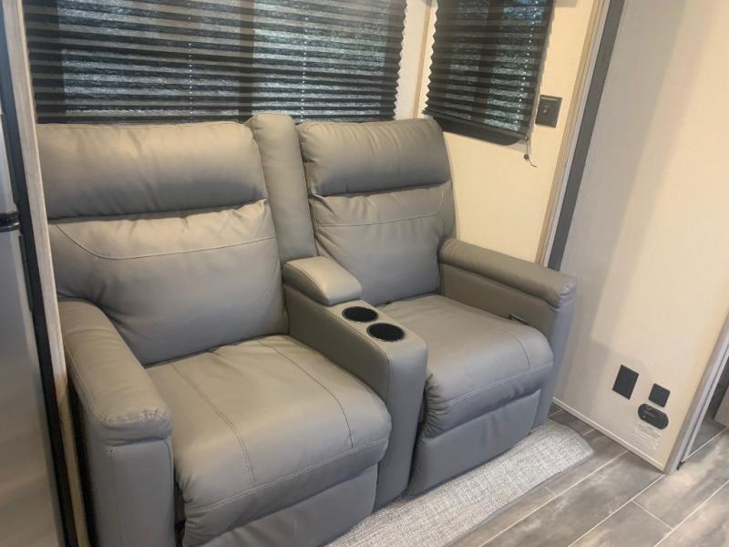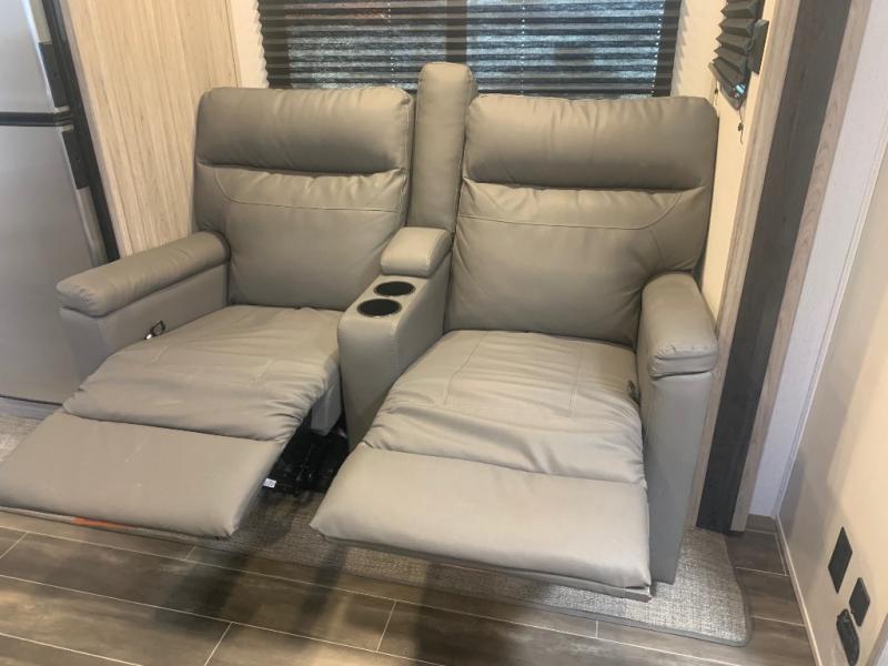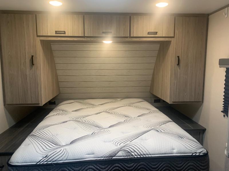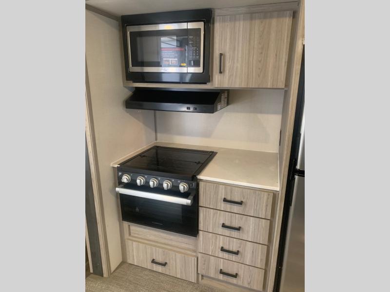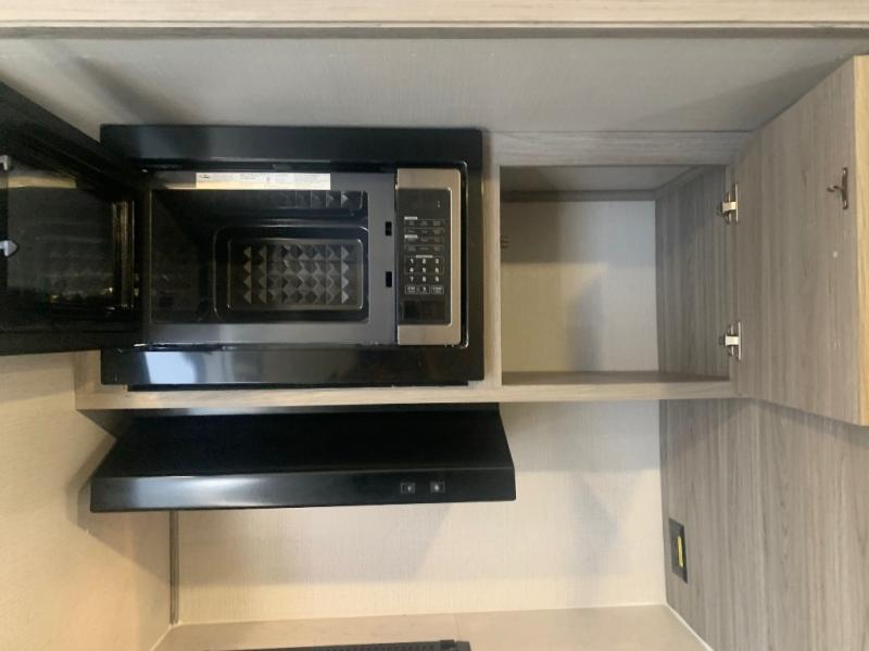 You can take many different kinds of trips with this Passport SL travel trailer! Once you get to the campsite and set up the 19' awning, you can remove your travel gear from the exterior pass-through storage to create your own little retreat. On the interior, the front private bedroom provides you with a queen-size bed, nightstands, and bedside wardrobes so that you can easily get changed every morning and night. The large slide out in the main living area will add to the amount of living space on the interior without adding to the overall width of the trailer. As the night comes to a close, you can heat up a bag of popcorn in the microwave before sitting down in the tri-fold sofa sleeper which could be switched out for the optional theater seating.