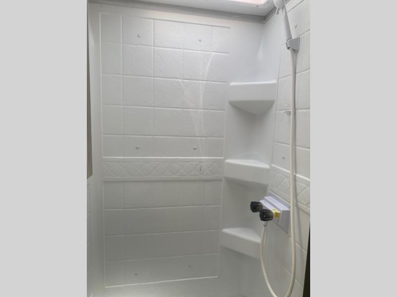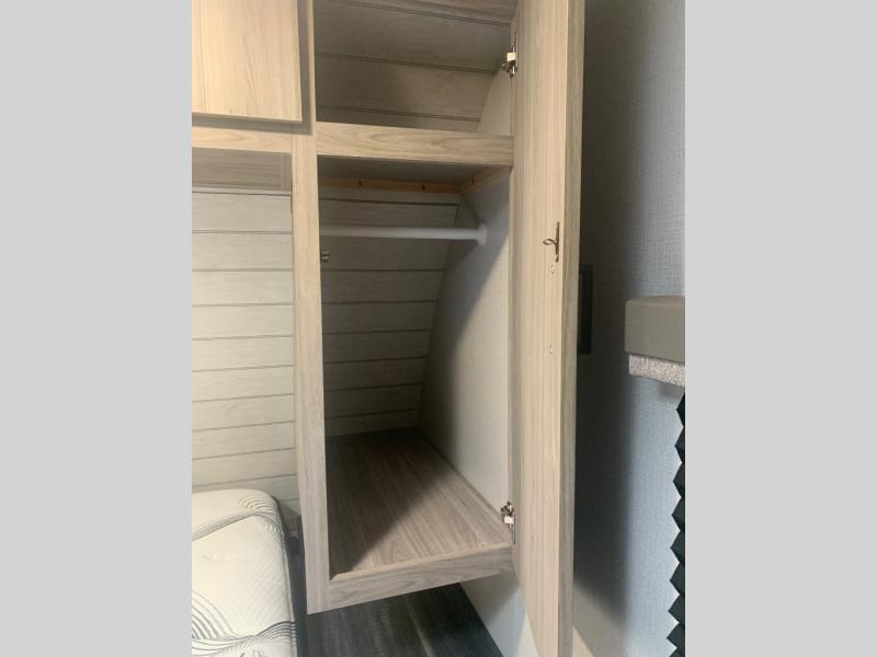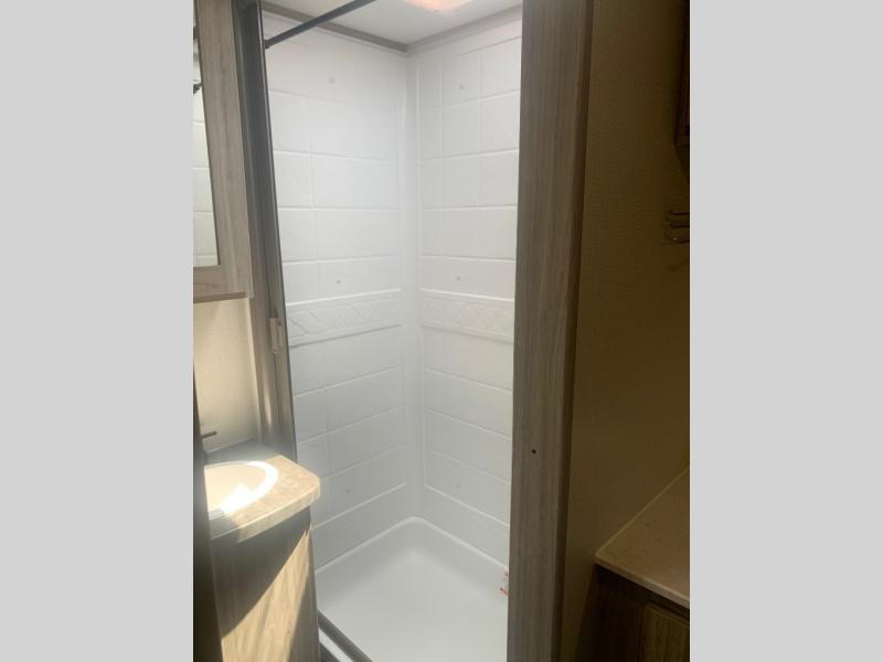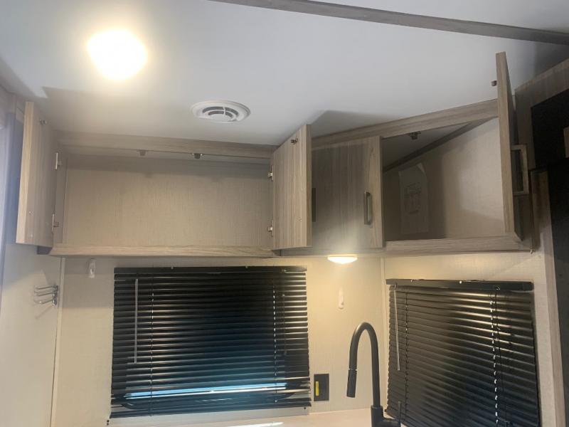 The Passport SL travel trailers by Keystone RV come in a compact design with travel-friendly lengths that are lightweight and easy to tow behind many smaller crossover SUVs. You will find several residential-style features such as durable Beauflor® vinyl flooring, upgraded window treatments and valances, and bathroom countertops. The exterior shower with hot and cold water is very useful as you get cleaned up before entering the RV, wash your pets, or even rinse a few dishes outside. The Passport also now contains a HyperDeck flooring system which is a high-performance, water-resistant RV floor that comes as a breakthrough design from the Keystone Innovation Lab. This flooring is more resilient, stronger, and lighter than traditional laminated wood construction.