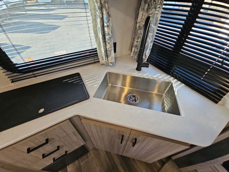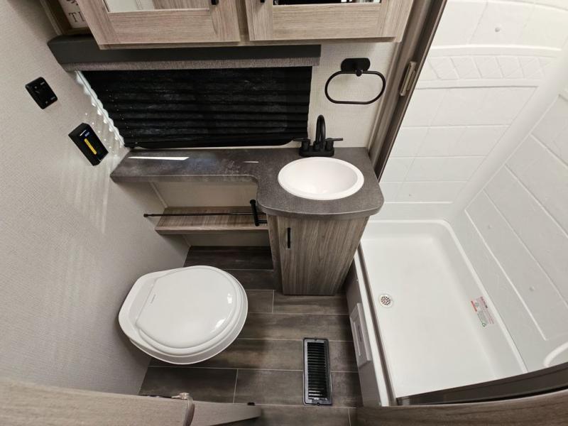 The Passport SL travel trailers by Keystone RV come in a compact design with travel-friendly lengths that are lightweight and easy to tow behind many smaller crossover SUVs. You will find several residential-style features such as durable Beauflor® vinyl flooring, upgraded window treatments and valances, and bathroom countertops. The exterior shower with hot and cold water is very useful as you get cleaned up before entering the RV, wash your pets, or even rinse a few dishes outside. The Passport also now contains a HyperDeck flooring system which is a high-performance, water-resistant RV floor that comes as a breakthrough design from the Keystone Innovation Lab. This flooring is more resilient, stronger, and lighter than traditional laminated wood construction.