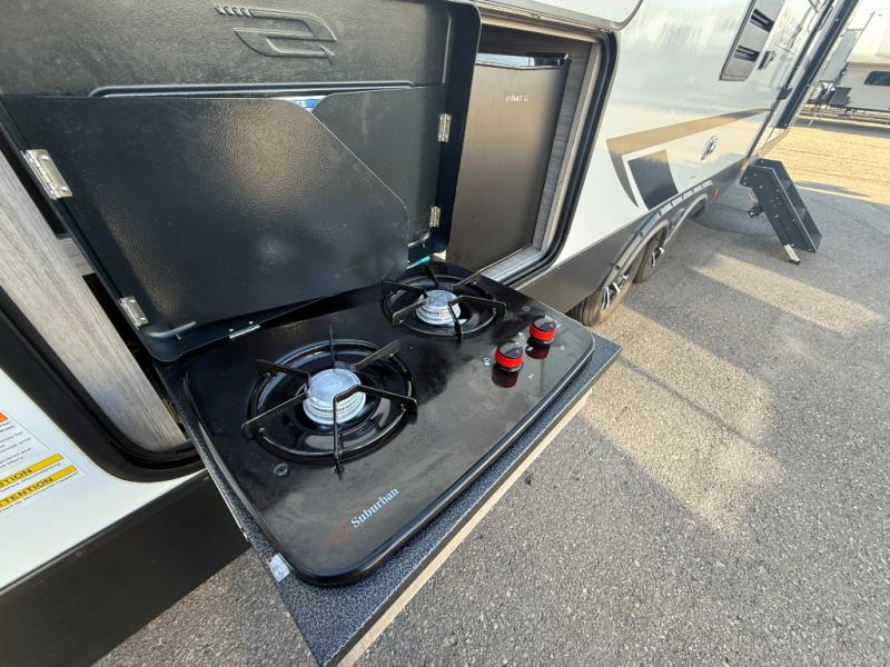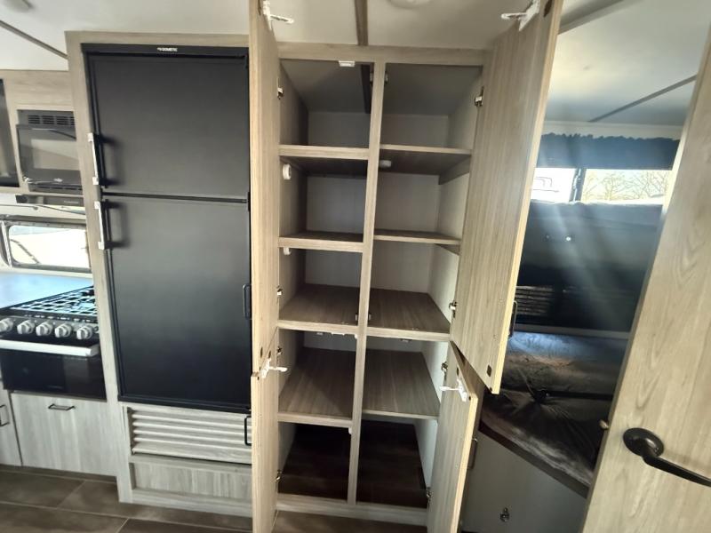 Let your days turn into weeks and your weeks turn into months with this Passport SL travel trailer! You can keep all of your gear stored effortlessly in the rear cargo door and the front pass-through storage compartment, and the interior also offers some storage space with the bedside wardrobes and large kitchen pantry or utilize this space as a wardrobe. You also have plenty of space to keep your perishable foods from spoiling with the interior 8-cubic foot refrigerator and in the exterior refrigerator in the outside kitchen. The tri-fold sofa sleeper and U-shaped dinette will provide you with some extra sleeping space so that you can invite friends or family to join you, and the full bathroom is going to keep everyone clean. You can also choose to add the optional Pivot furniture in place of the dinette and sofa or optional theater seats.