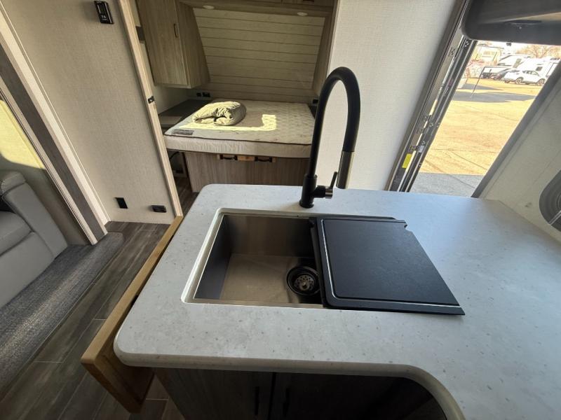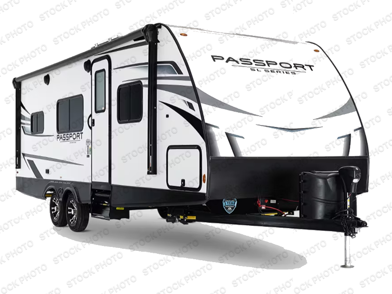 The Passport SL travel trailers by Keystone RV come in a compact design with travel-friendly lengths that are lightweight and easy to tow behind many smaller crossover SUVs. You will find several residential-style features such as durable Beauflor® vinyl flooring, upgraded window treatments and valances, and bathroom countertops. The exterior shower with hot and cold water is very useful as you get cleaned up before entering the RV, wash your pets, or even rinse a few dishes outside. The Passport also now contains a HyperDeck flooring system which is a high-performance, water-resistant RV floor that comes as a breakthrough design from the Keystone Innovation Lab. This flooring is more resilient, stronger, and lighter than traditional laminated wood construction.