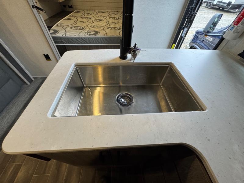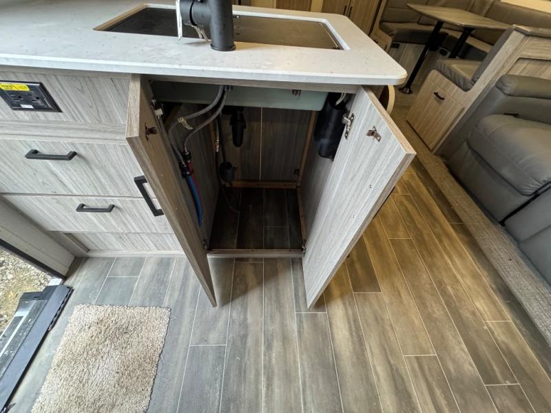 The Passport SL travel trailers by Keystone RV come in a compact design with travel-friendly lengths that are lightweight and easy to tow behind many smaller crossover SUVs. You will find several residential-style features such as durable Beauflor® vinyl flooring, upgraded window treatments and valances, and bathroom countertops. The exterior shower with hot and cold water is very useful as you get cleaned up before entering the RV, wash your pets, or even rinse a few dishes outside. The Passport also now contains a HyperDeck flooring system which is a high-performance, water-resistant RV floor that comes as a breakthrough design from the Keystone Innovation Lab. This flooring is more resilient, stronger, and lighter than traditional laminated wood construction.