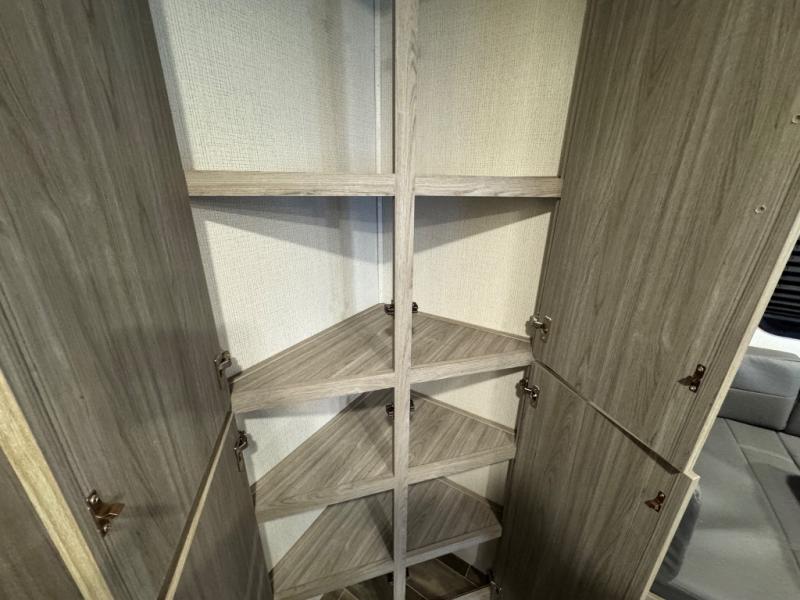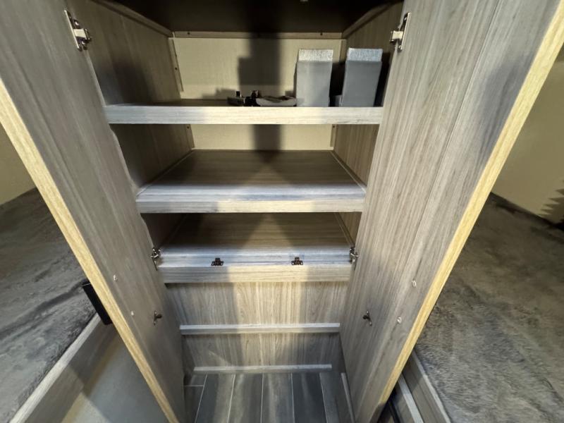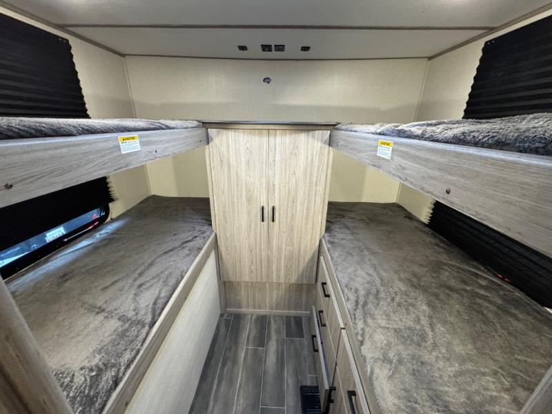 This Passport SL travel trailer has an amazing amount of storage capabilities with its two exterior pass-through storage compartments! There is also excellent interior storage with the bedside wardrobes, bunkhouse storage, kitchen pantry, and bathroom linen closet. This trailer is also full of sleeping space with its queen-size bed up front in the private bedroom, four bunk beds back in the rear bunkhouse, and U-shaped dinette and tri-fold sleeper sofa in the main living area. The dinette and sofa rest on a large slide so that you have plenty of room as you spend time indoors, and the kitchen has everything you need to make all of your family's favorite recipes.