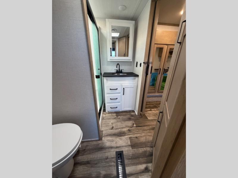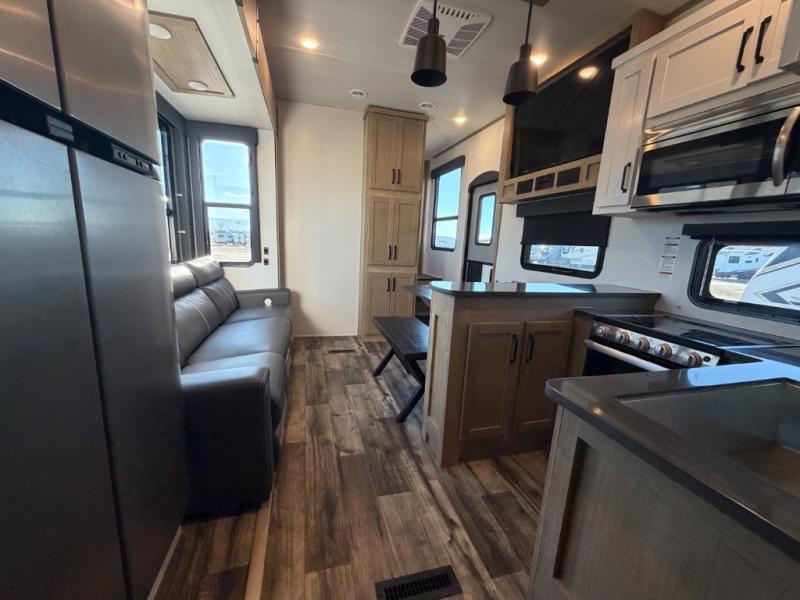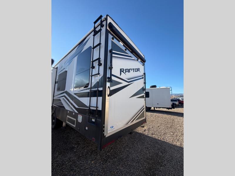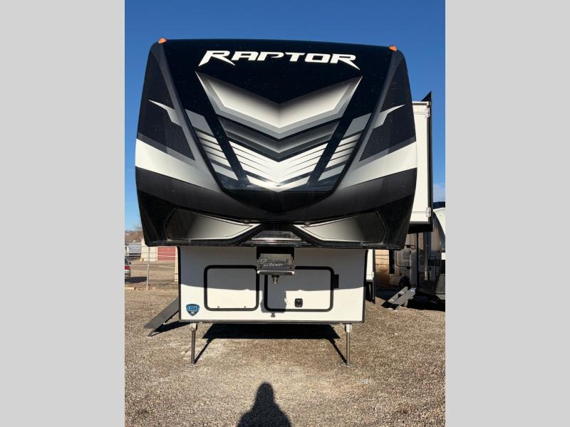 Experience a breath of fresh air with one of these Keystone RV Raptor fifth wheel toy haulers! Their rugged construction consists of a walkable one-piece Alpha Super Flex TPO roof with aluminum flashing, G-rated tires, Dyna Span floor decking, and 5,000 lb. frame-welded tie downs to keep your toys in place as you travel. With an on-demand water heater, you can have an endless amount of hot water when you need it. Some unexpected conveniences you will appreciate include an Omni-Chill A/C system to keep you cool on those hot summer days, a Furrion backup camera and HitchVision to prevent damages, and a Generation 3 iN-Command smart automation system with Global Connect to make life easier. Soft-close hardwood cabinetry makes for a quiet closure to enjoy undetected late night snacking, and the MORryde zero-gravity ramp door makes it easy to load and unload your toys. Come find the right one for you today!