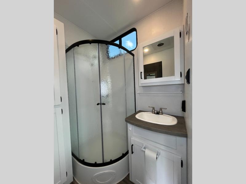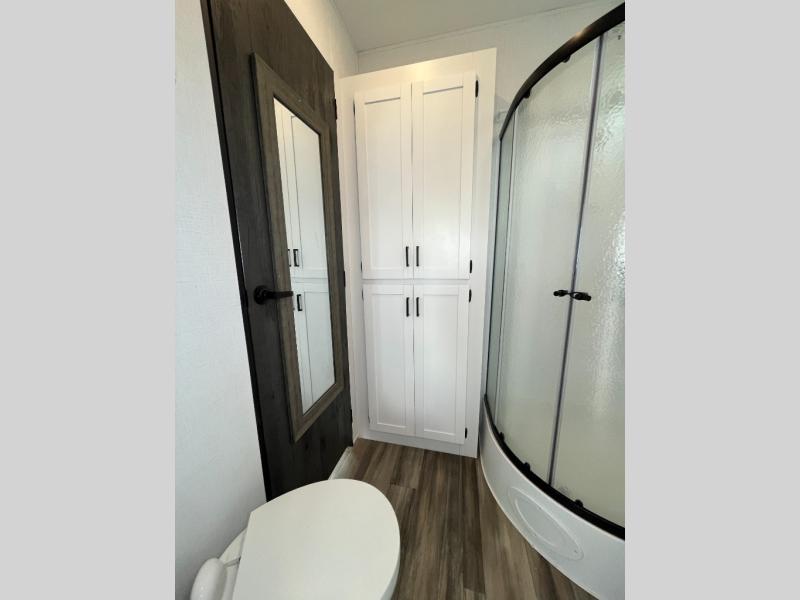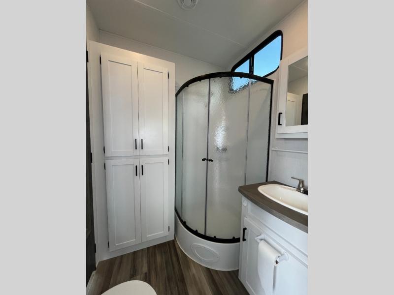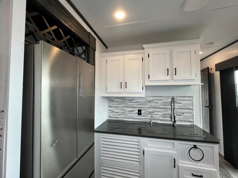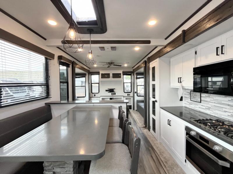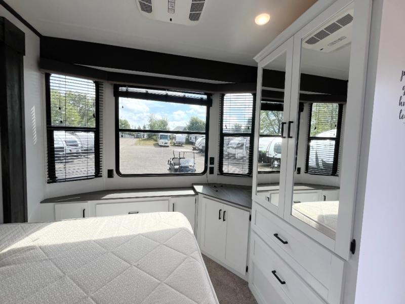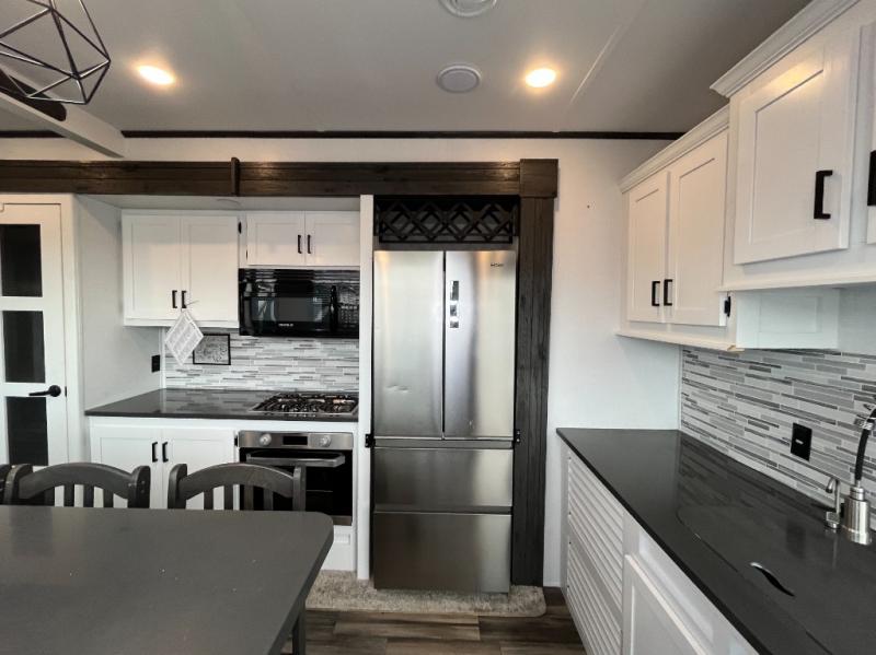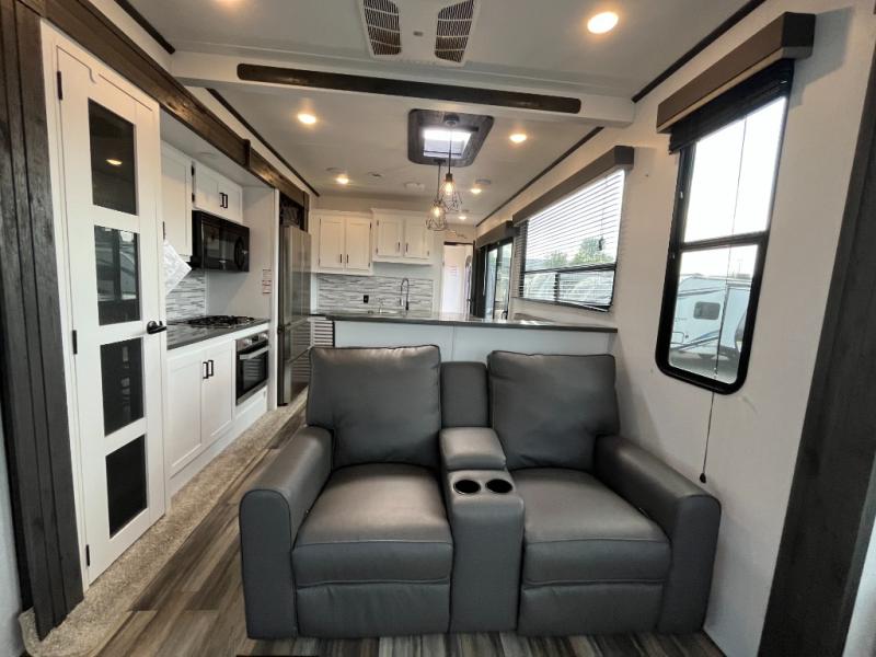 This Retreat destination trailer is the unit you want to take a look at if you are planning on vacationing for a long period of time. This unit gives your guests space of their own if they want to use the sleeper sofas for their sleeping space at night. The private master suite has a king bed and plenty of storage options for your things in the armoire and dresser. There is a private entry door into the bathroom for convenience especially at night. The kitchen is nice and big, giving you plenty of space for prepping for meals, cooking them, and cleaning up afterward. The 15 cu. ft. refrigerator will give you plenty of room for storing your perishables while you are away from home. In addition to all of that, the optional Luxury Package available on this model will wow you!
