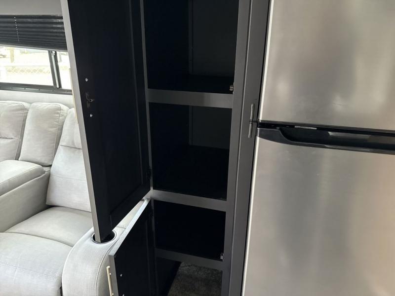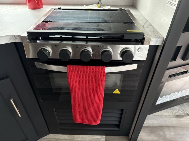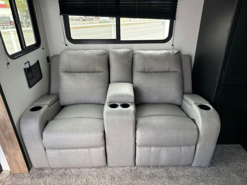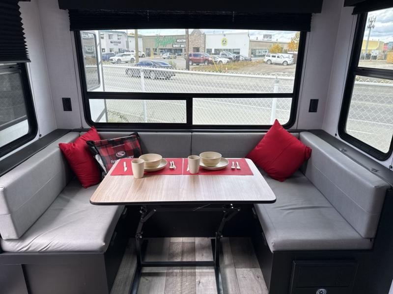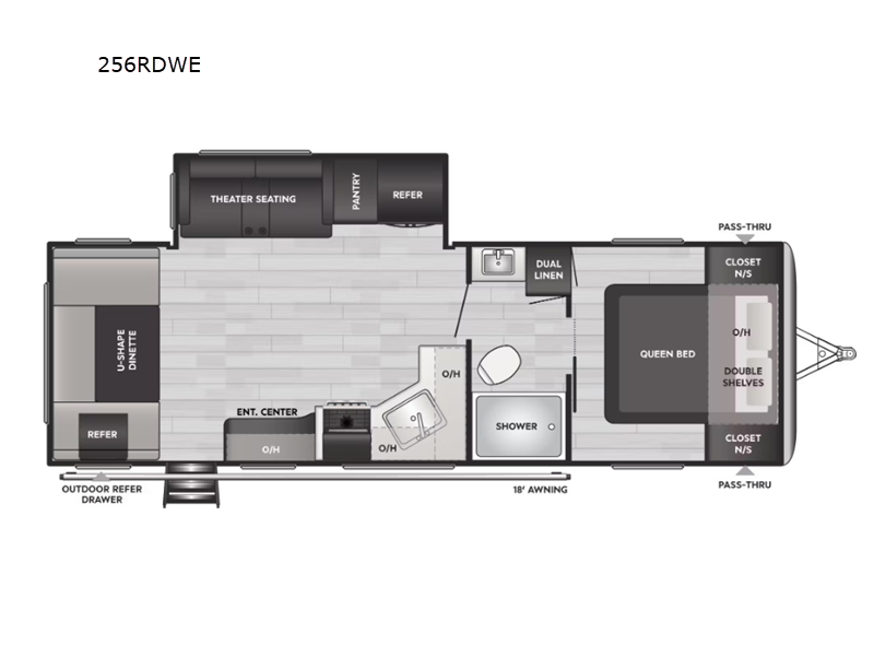 Load up and head to the lake in this cozy travel trailer. The large slide out will provide your crew with more space to stretch out, and the rear U-shaped dinette features a panoramic view to enjoy nature views. The kitchen includes a three burner gas stove with a 17" oven, plus a microwave oven and a refrigerator. You'll also find a theater seat across from the entertainment center, and you can add the optional LED TV if you enjoy watching movies during camping trips. Head through the bath to enjoy your private bedroom with a queen bed, dual closets and nightstands, plus double shelves over the bed for your belongings.