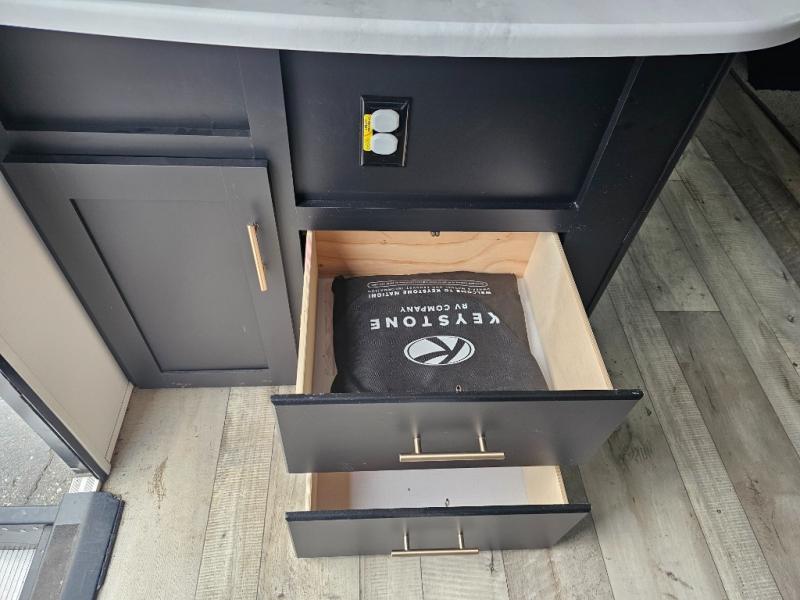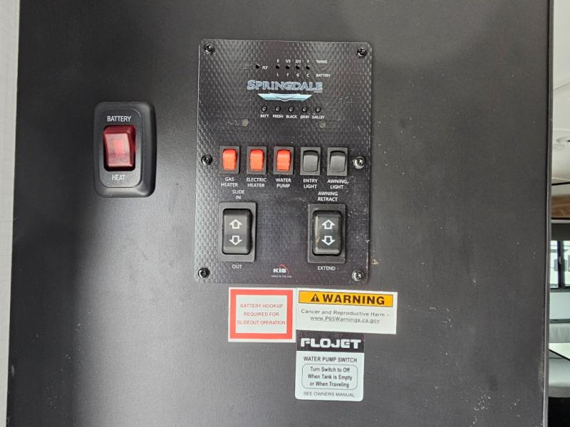 With any Keystone Springdale travel trailer, you will have a friction hinge entry door with sturdy MORryde StepAbove steps, a pass-through storage compartment for your outdoor gear, and reliable Dexter E-Z Lube axles to maneuver your Springdale down the road and into the campsites. Some of the Keystone Exclusives provide 12V color-coded wiring with easy-to-trace circuits which is better than conventional RV wiring allowing a faster diagnosis for quicker repairs, and the streamlined heat distribution that uses in-floor heat vents for more efficiency for uninterrupted air flow. Also included, the Blade high performance air flow system that delivers 30% more air flow. The interior gives you pressed kitchen countertops, pleated night shades, and designer upholstered window valances for easy care and style, and more depending on the Springdale you choose!